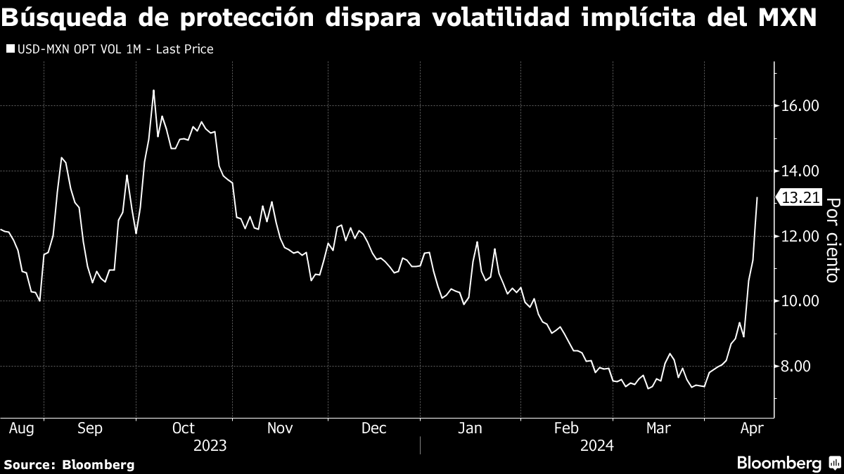 “由于波动性增加和利差预期降低,这是一个厌恶风险的环境,” BBVA 墨西哥的策略师米格尔·伊图里巴里亚说。BBVA 的预测是比索在未来两个月内达到每美元 17.40,并在年底前达到每美元 18.20,从目前的 17 开始。