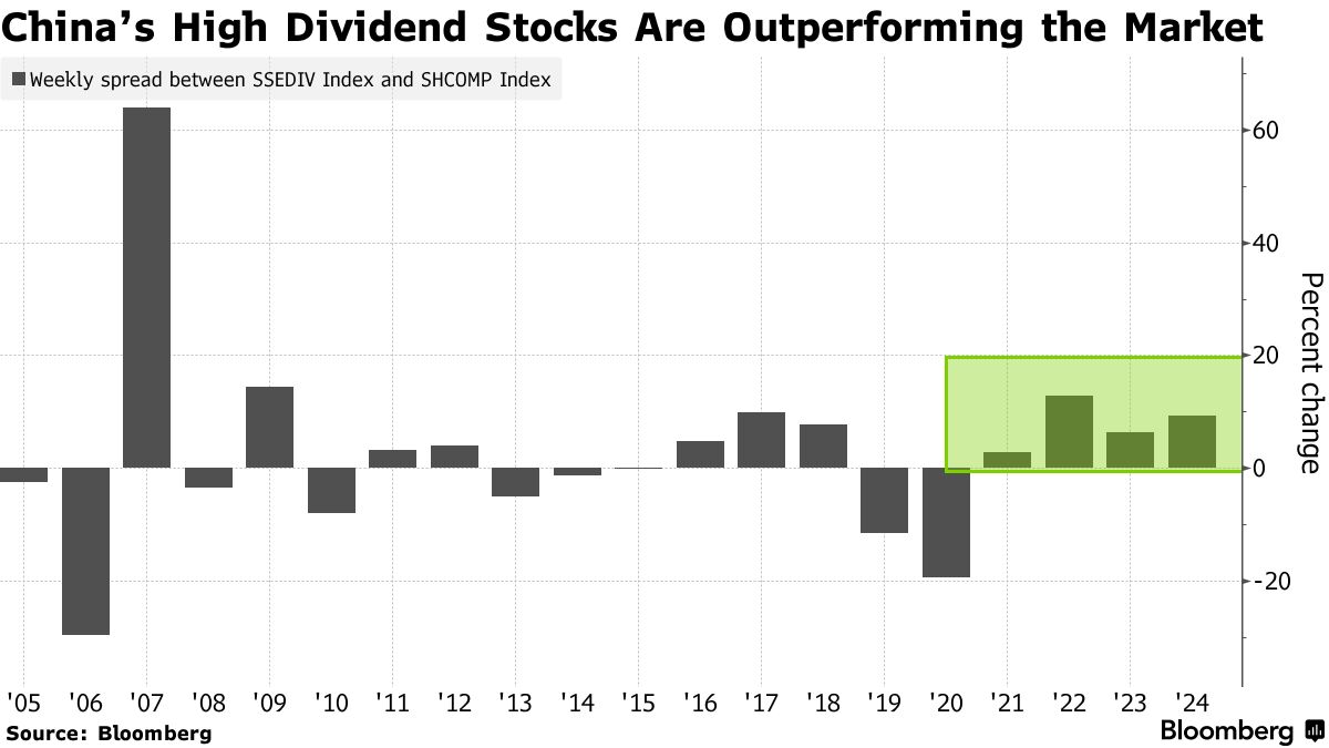 具有高股息历史的公司指数今年上涨超过15%,有望连续第四年胜过基准上证综指。