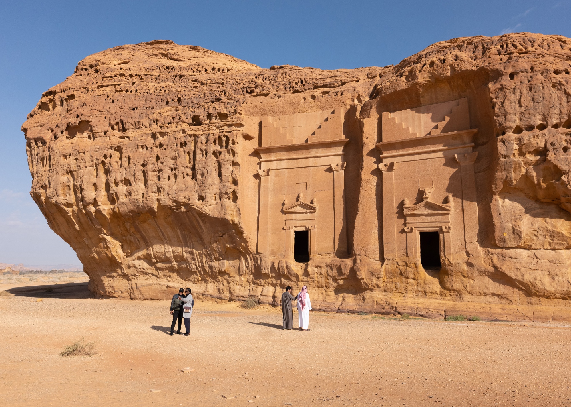 在Hegra考古遗址的游客。那里的大部分遗迹来自纳巴泰人,他们将Hegra视为继Petra之后的第二大城市。摄影师:Jeremy Suyker/Bloomberg