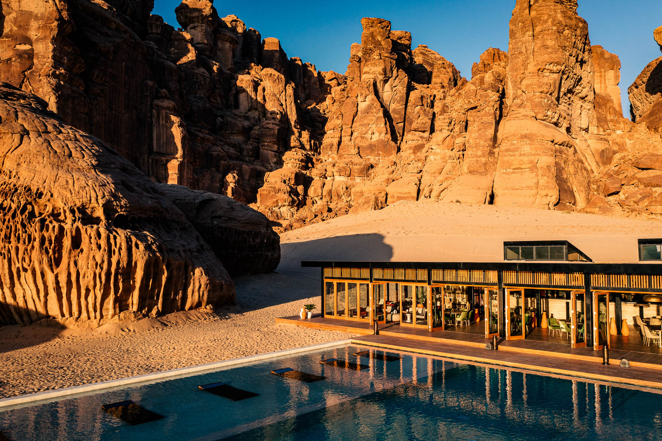 阿尔乌拉是沙特阿拉伯干旱希贾兹地区的绿洲城市。它位于古代香料之路上,连接印度和波斯湾与黎凡特和欧洲。度假村位于离老城区约30分钟车程的私人山谷中。摄影师:Tanveer Badal考虑因素包括2018年沙特记者Jamal Khashoggi的遇刺事件;任何婚外性行为可能面临死刑的最高处罚,尽管截至2019年,未婚外国夫妇可以共享酒店房间;以及在涉及LGBTQ人士的安全和待遇时缺乏明确性。