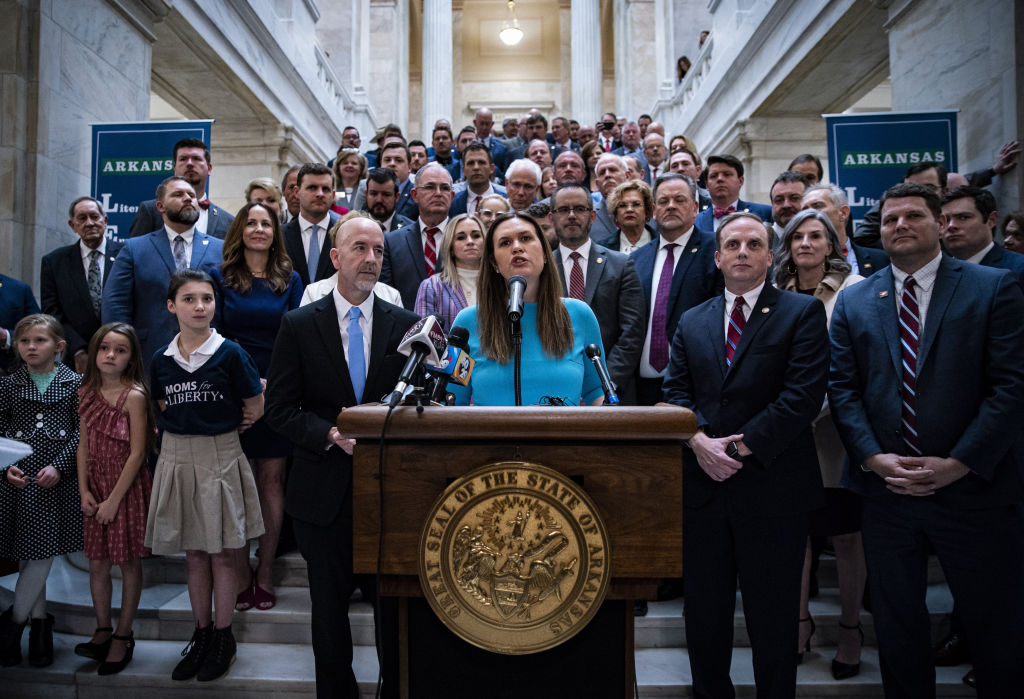 阿肯色州州长莎拉·哈克比·桑德斯。未显示:2万美元的讲台。
