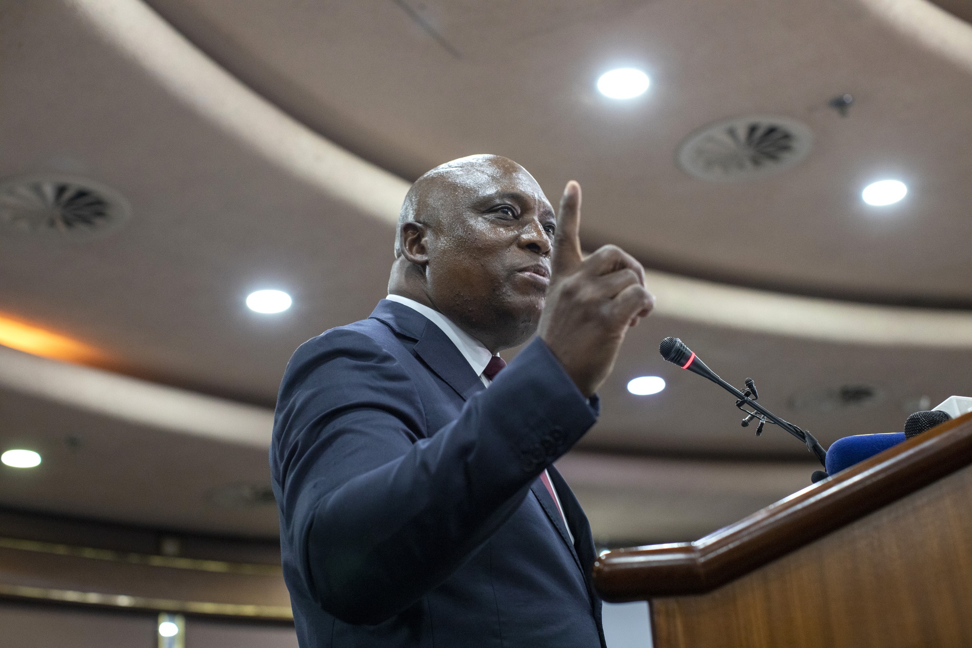 Mushayavanhu 在4月5日的哈拉雷新闻发布会上展示了一张 ZiG 纸币。摄影师:Cynthia R Matonhodze/Bloomberg