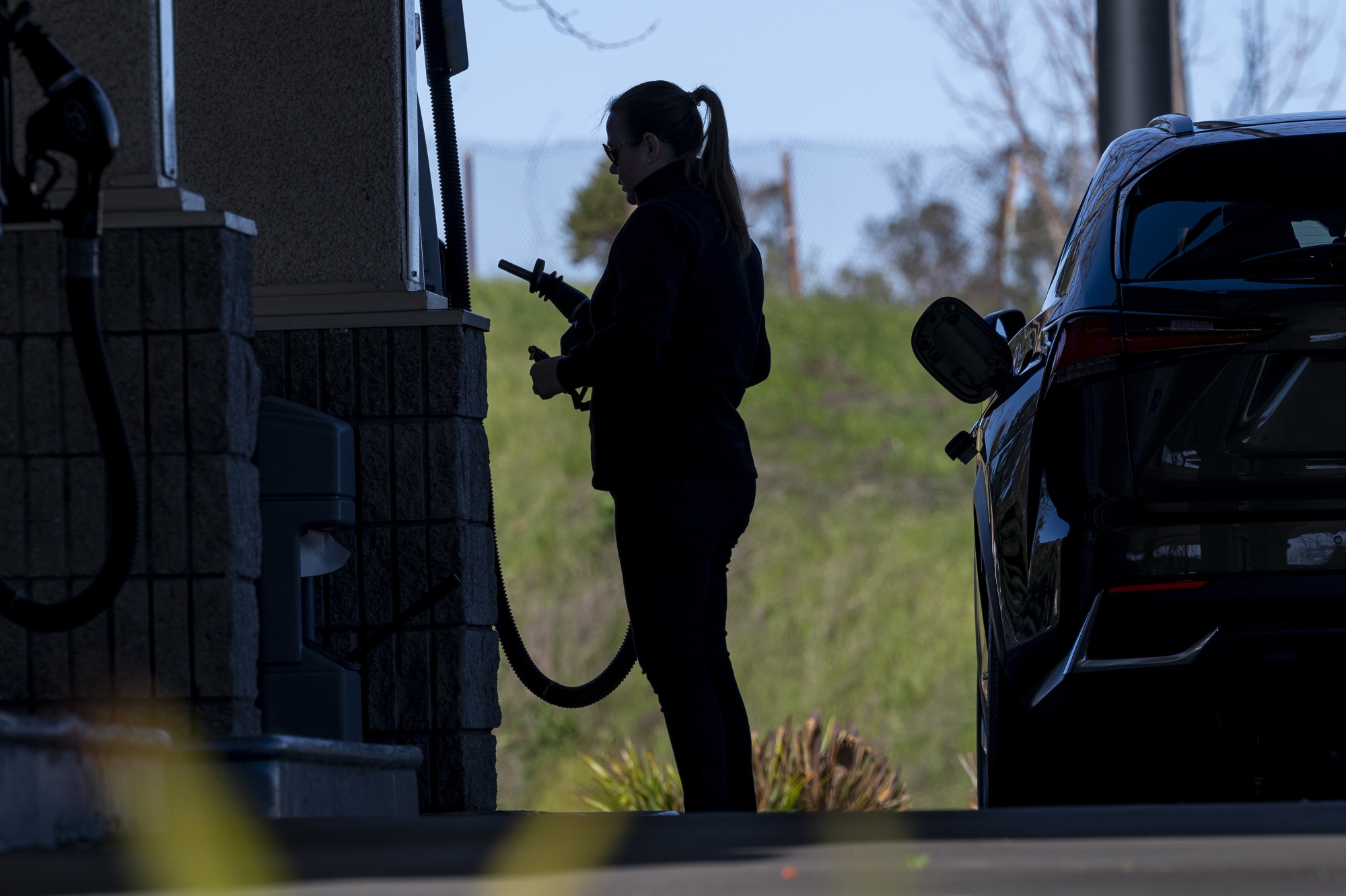 一个顾客在加利福尼亚州赫尔库勒斯加油。