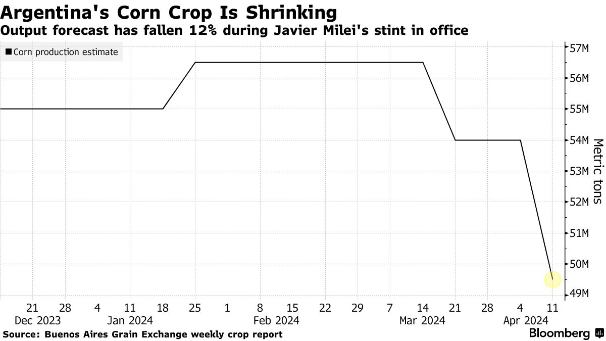 在农业强国科尔多瓦省,产量现在比上个月低了26%,预计将继续下降,月度现金损失超过11亿美元,根据该地区的谷物交易所。