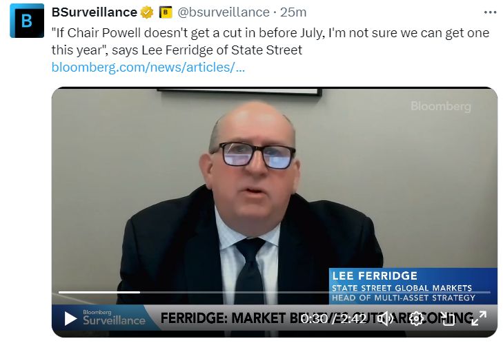 State Street Global Markets的李·费里奇可能最好地总结了交易员如何从预计多达七次降息到少于两次(如果有的话)的情况,而股票投资者则几乎没有任何波动,他们的注意力完全集中在联邦储备系统上。