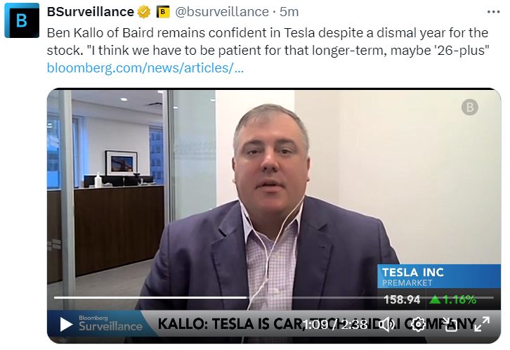 特斯拉公司的暴跌反映了华尔街越来越担心这家电动汽车制造商实际上是一家汽车公司,根据罗伯特·W·贝尔德公司的本·卡洛所说。