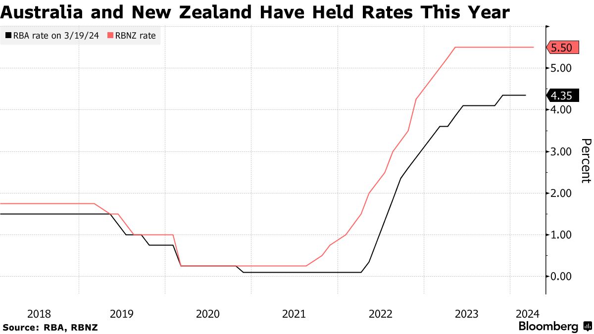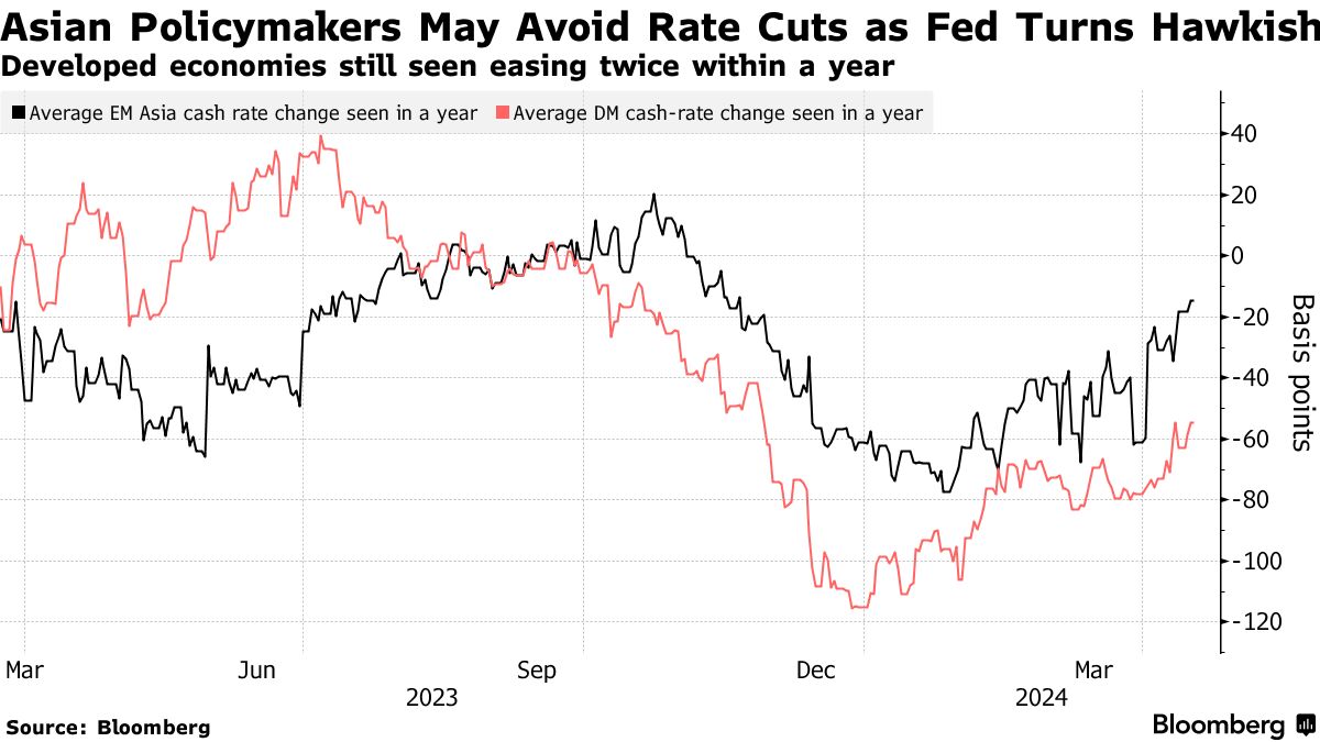 在华盛顿举行的国际货币基金组织和世界银行春季会议上,来自世界各地的央行行长们面临着鲍威尔最新政策的困境。如果欧洲央行、英国央行和澳大利亚储备银行等央行启动自己的宽松周期,这可能会导致本国货币贬值——提高进口价格,破坏降低通胀的进展。但不宽松可能会冒险影响经济增长。