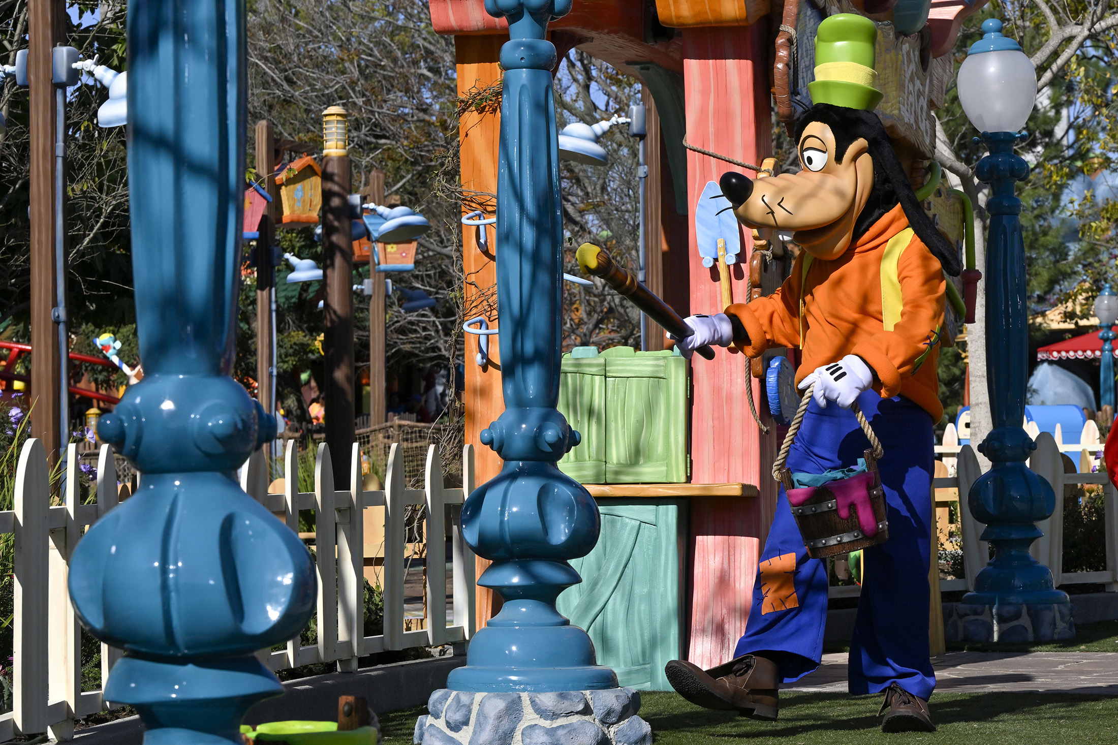 高飞在加利福尼亚州安纳海姆的迪士尼乐园重新开放期间的米奇动画城。