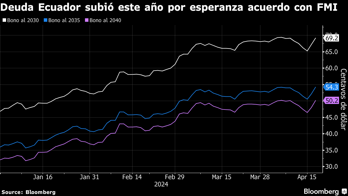厄瓜多尔的美元债券飙升,领跑新兴市场,迹象表明与国际货币基金组织达成新融资协议的迹象即将出现。