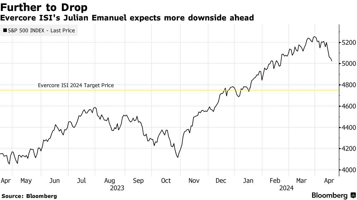 股市正在经历一场下行,将持续到2024年年底,此前曾从上个月的历史最高点回落,这是Evercore ISI的朱利安·伊曼纽尔(Julian Emanuel)的观点。