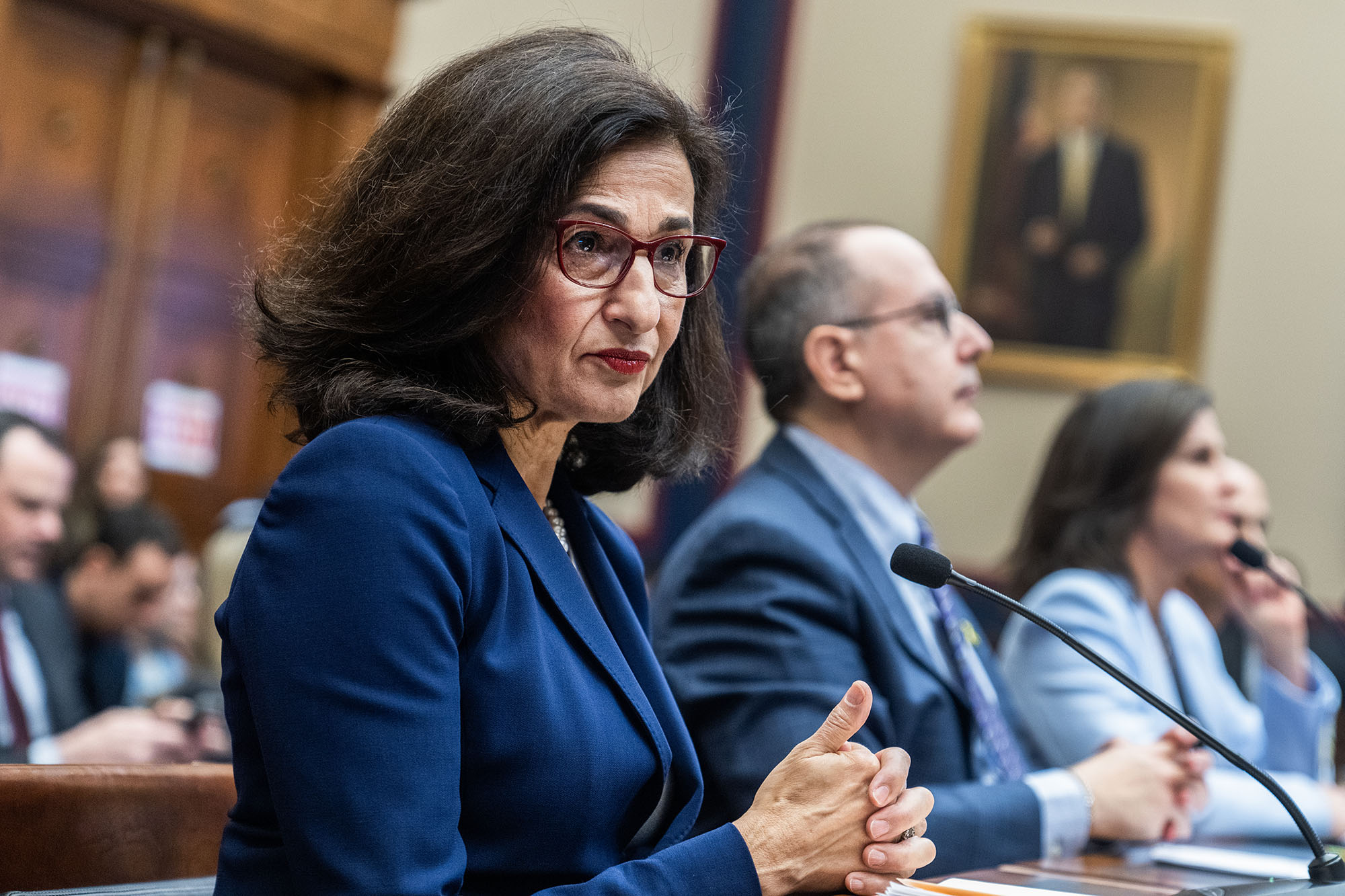 Minouche Shafik 在4月17日在华盛顿特区参加众议院教育和劳工委员会听证会时作证。
