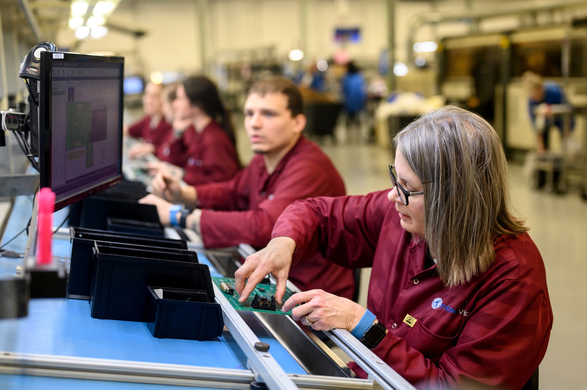 宾夕法尼亚州一家工厂的工人,美国。照片:Justin Merriman/Bloomberg