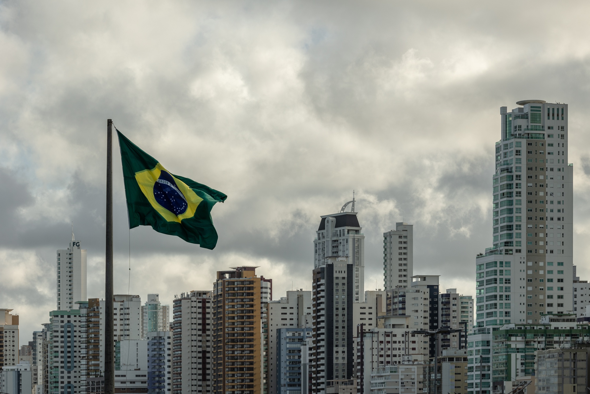 巴西国旗在巴西巴尔内阿里奥坎博里乌。