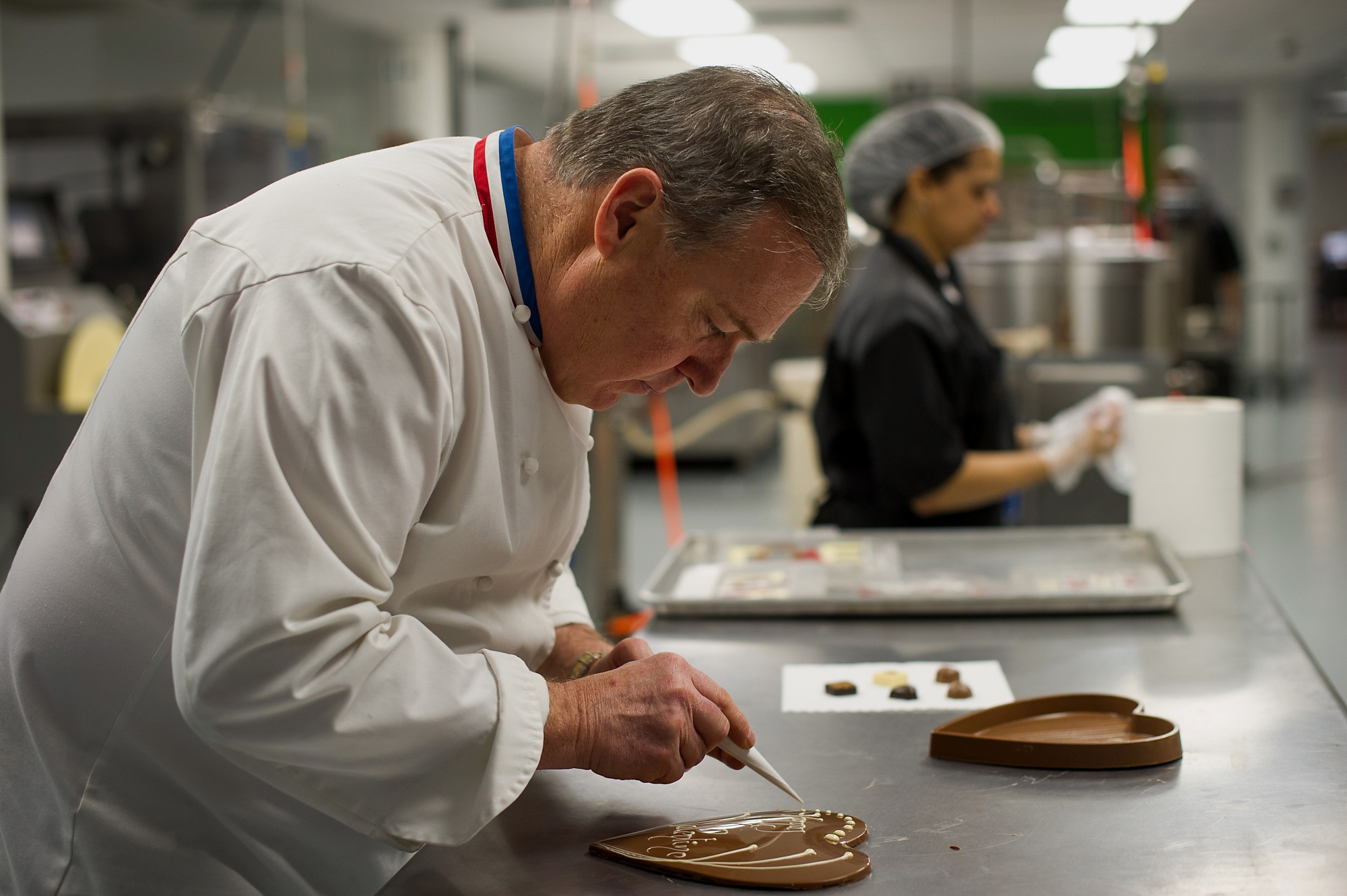 大师级糕点师Jacques Torres在美国纽约布鲁克林的工厂制作情人节巧克力,拍摄于2014年2月6日。