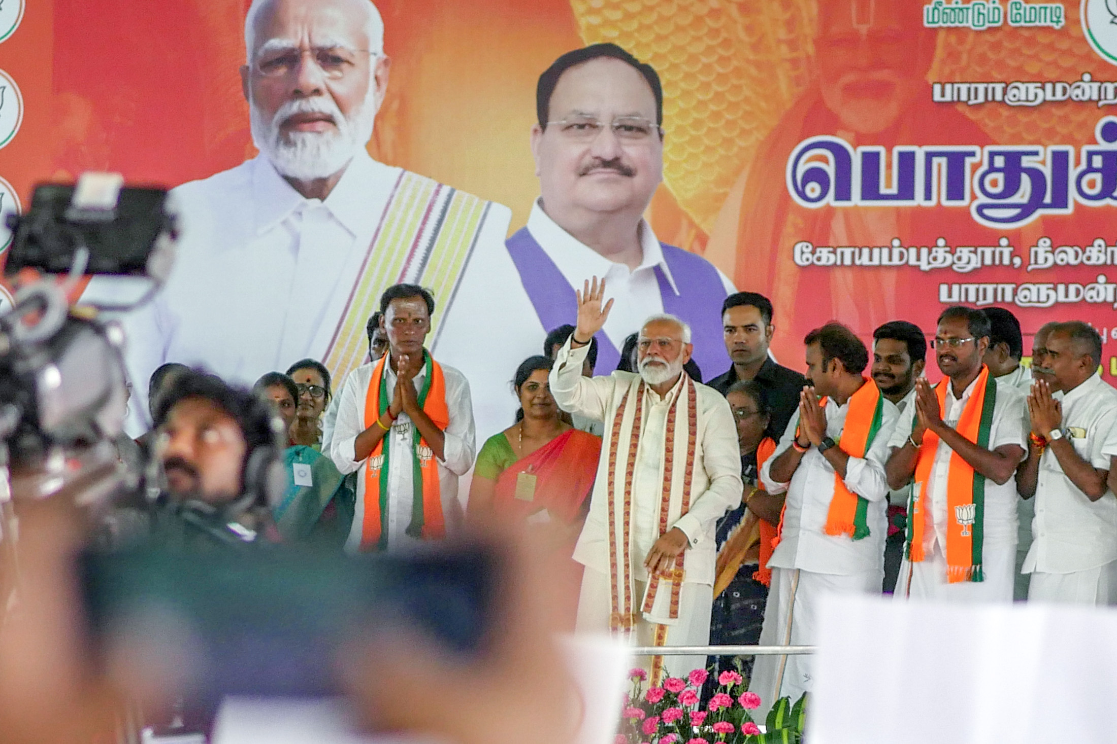 在过去的10周里,莫迪已经前往泰米尔纳德邦七次。人民党在该邦的39个席位中有23名候选人。2019年,人民党只参加了五个席位的竞选,并且没有赢得任何一个。