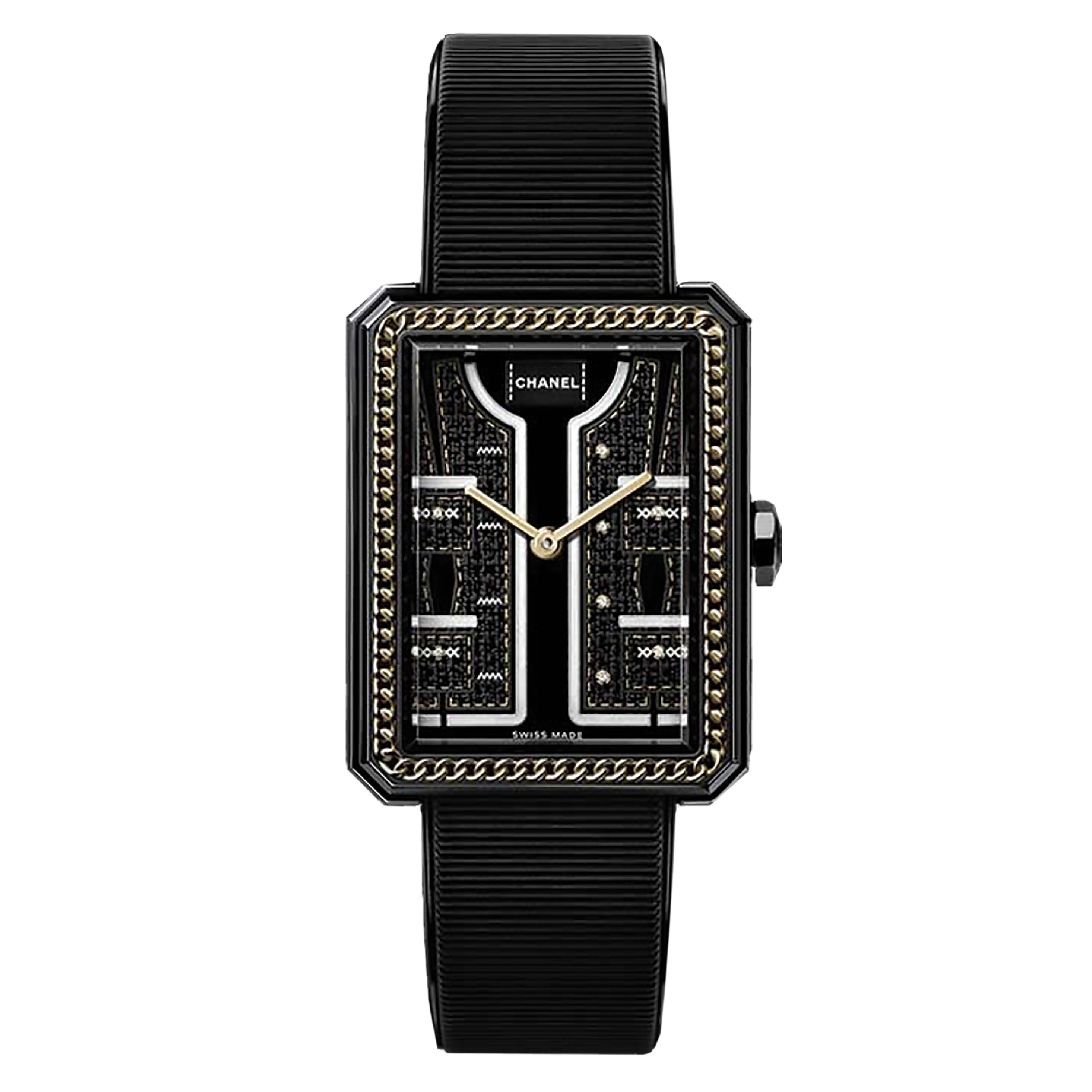 香奈儿男友高级定制手表来源:香奈儿这个法国品牌总是推出聪明俏皮且美丽的设计,致敬品牌创始人可可·香奈儿最喜欢的事物,包括狮子和数字五。设计师最常使用的图案之一是缝制在夹克下摆的链条图案。在这款限量版石英手表上,这种图案在表圈周围的编织金色中得以体现。10,400美元