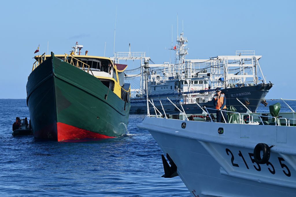 菲律宾海岸警卫队和中国海事船只在南中国海。