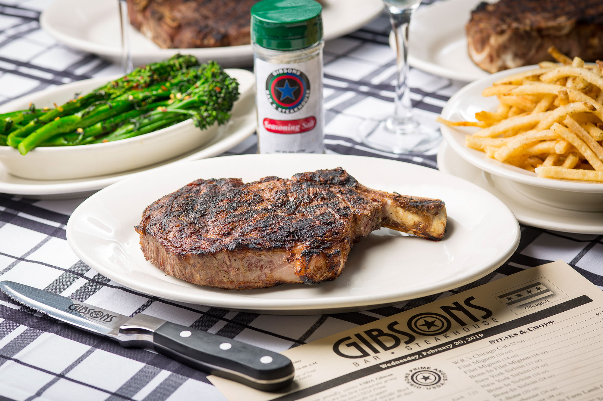 W.R.的芝加哥切割,一块带骨的肋眼牛排,在Gibsons售价87美元。