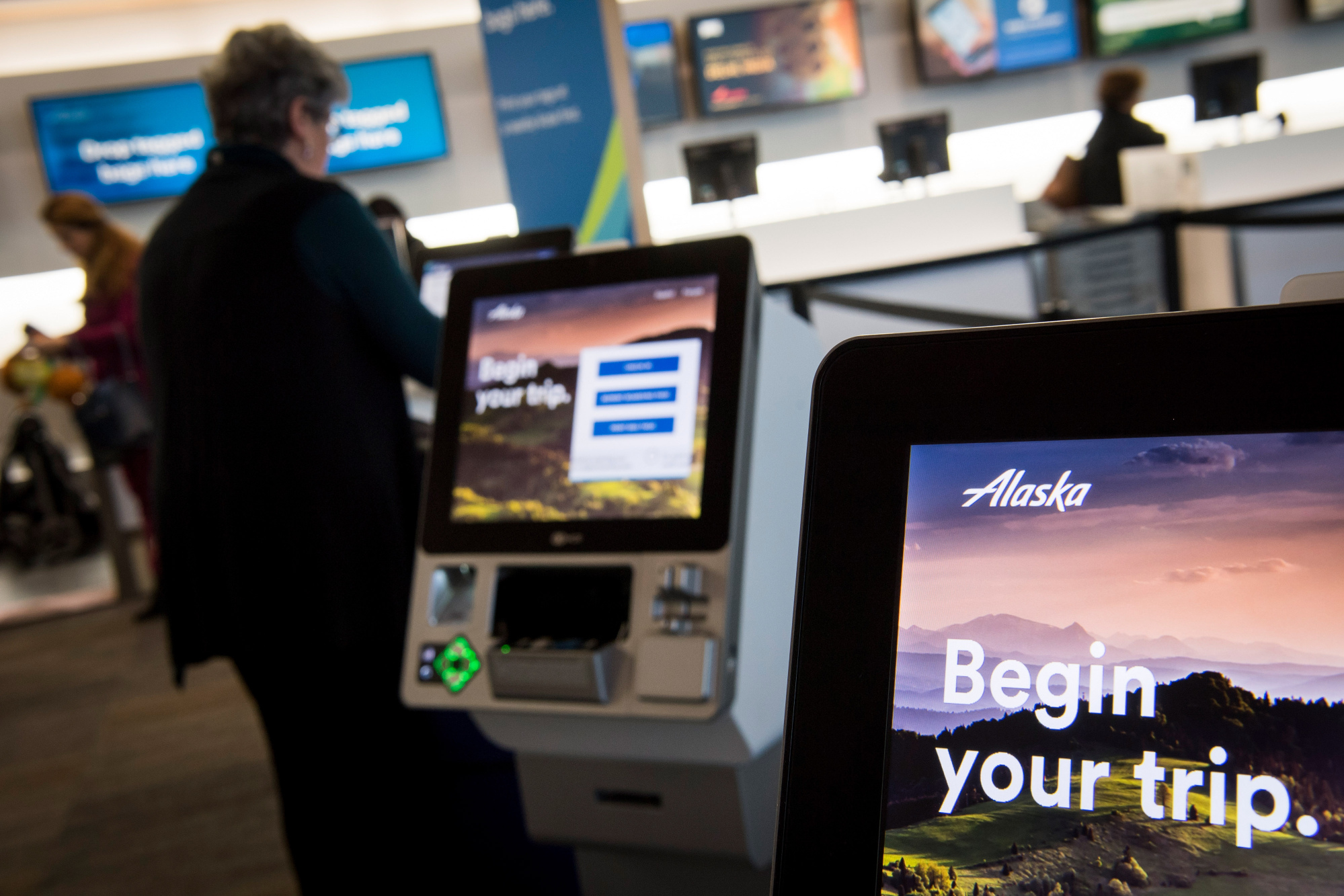 阿拉斯加航空集团公司在旧金山国际机场的自助办理登机柜台。