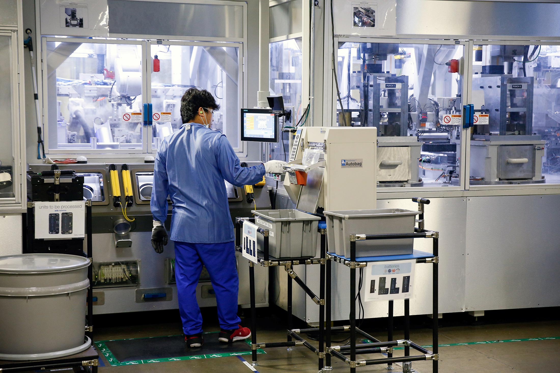 回收厂的少数工人可以进入一间被一些人称为“苹果笼”的安全室。在锁着的门后,经过金属探测器和监控摄像头,多伦多北部的电子废料处理公司GEEP Canada Inc.的一小队员工在一堆堆装满旧iPhone的托盘上进行筛选。他们在一组桌子上手动打开每部iPhone,拆下电池和其他零件,然后将这些零件扔进分类箱。当一个箱子里堆积了足够的材料时,它就会被铲车运到仓库的一个更大的区域,那里的内容会被倾倒进巨大的工业粉碎机,将这些设备碾成小碎片。