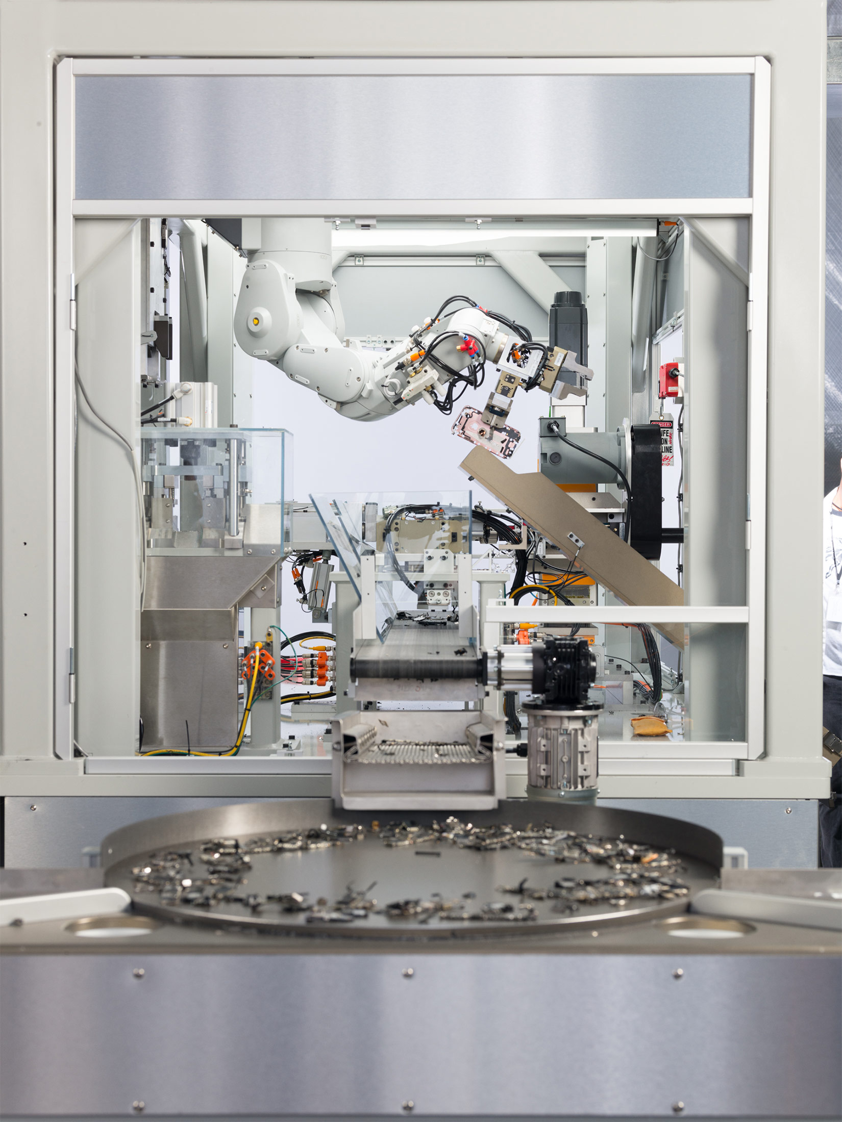 利亚姆的精密自动化,然而,却被证明是一条死胡同。它只能处理一种iPhone型号,而且处理效果并不好。如果设备上有腐蚀的螺丝或黏糊糊的内部,机器人就会出现故障。一位熟悉该项目的人估计,利亚姆在没有人为干预的情况下可以运行大约10分钟。另一位人士表示,有时苹果会向机器人提供仍在运行的iPhone,并且在媒体演示时挑选更干净的单位,以避免崩溃,这表明利亚姆更多地是为了推广而不是可扩展性。