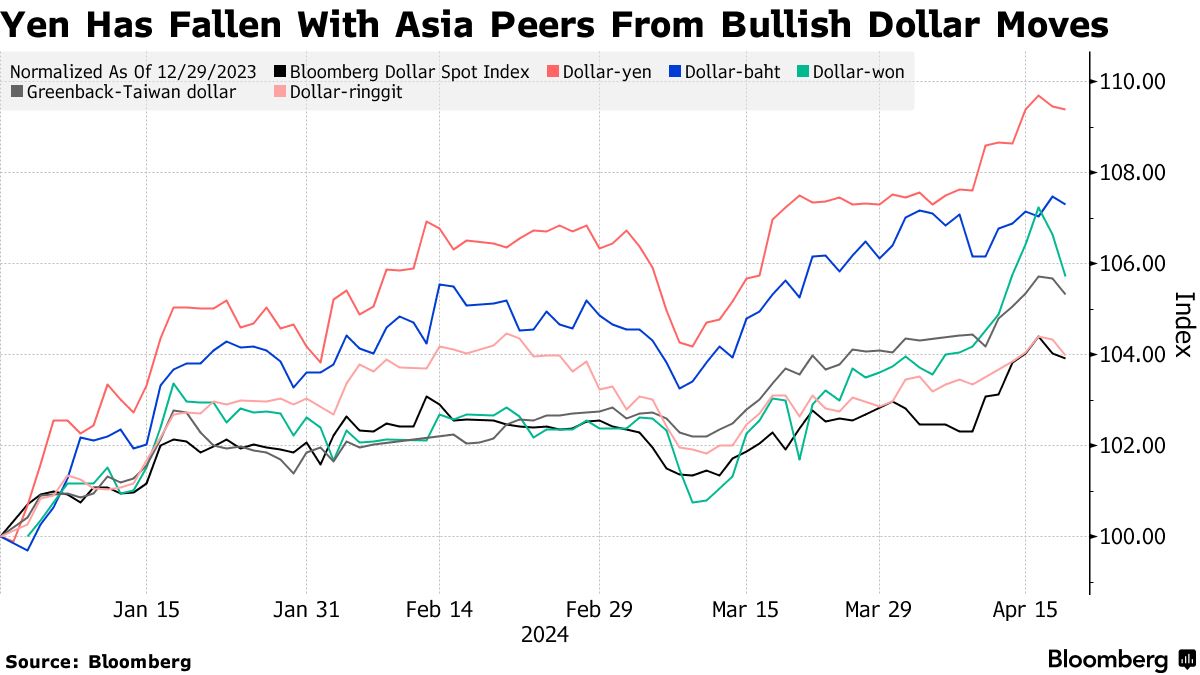 今年美元上涨约4%,表现优于所有主要货币。市场目前预计,备受关注的美联储政策转变将推迟至9月,根据掉期数据,这意味着由于美国国债收益率居高不下,亚洲资产将继续不具吸引力。
