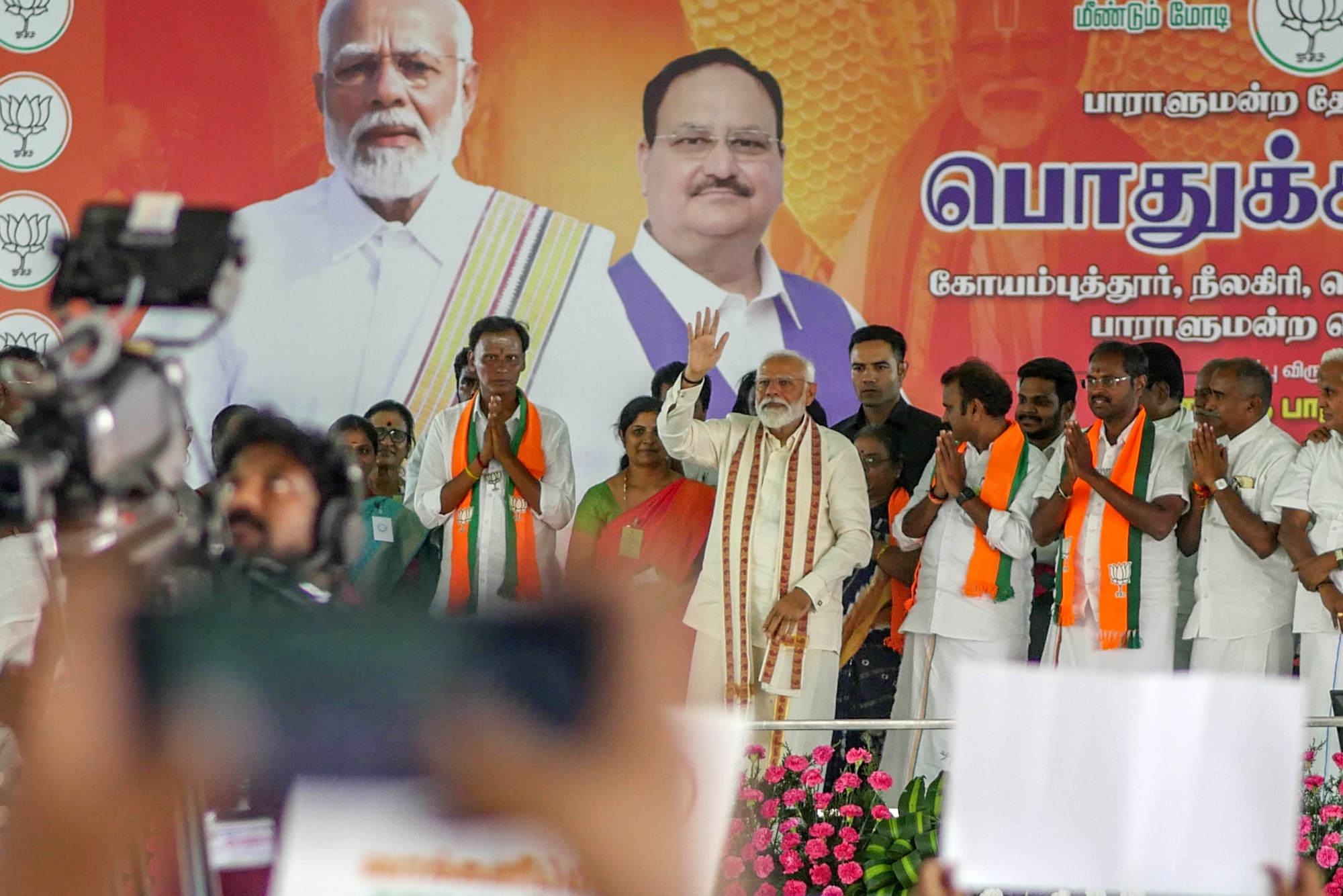 莫迪在印度泰米尔纳德邦哥印那加尔的竞选集会上。