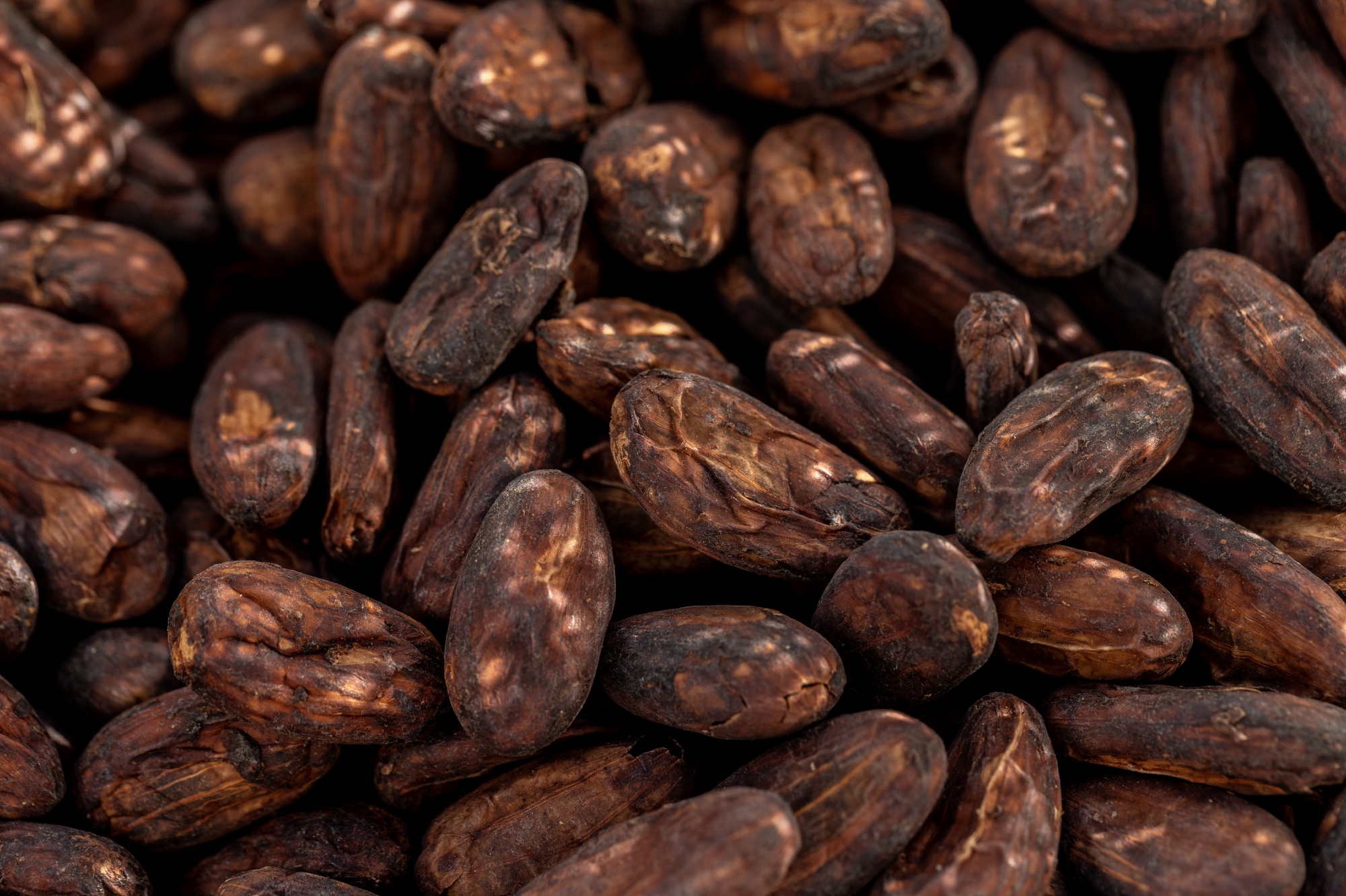 干燥的可可豆。