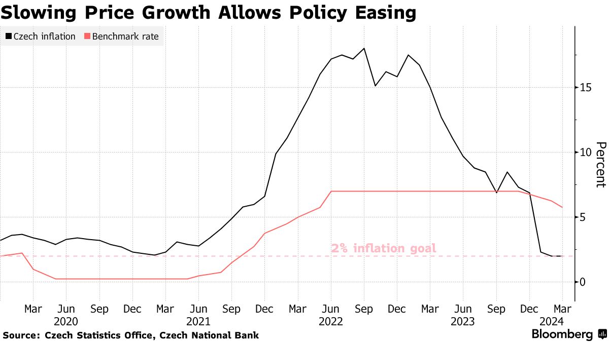 捷克共和国的3000亿美元经济在通胀放缓达到第一季度2%的通胀目标后,比最初预期提前并领先于地区同行,摆脱了两年的停滞。随着实际工资再次上涨和家庭消费增加,决策者现在比几个月前“更加乐观地看待增长”,普罗哈茨卡表示。