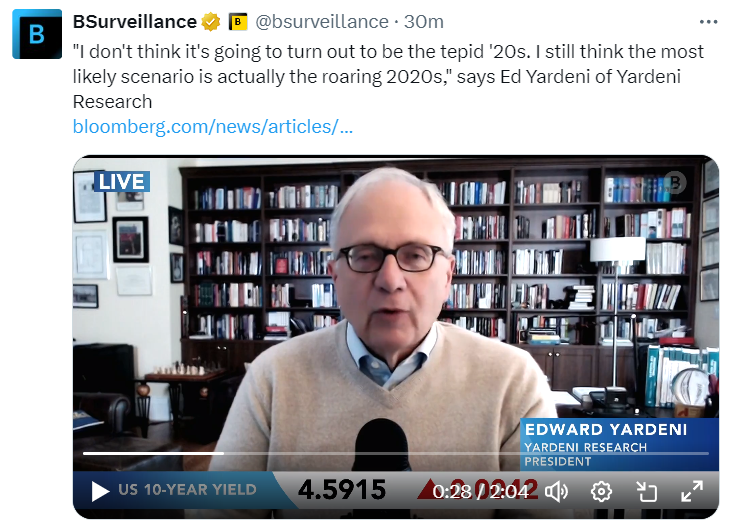 股市牛市的Ed Yardeni看到“繁荣的20年代”,而IMF预计未来十年将是“温和的”- 彭博社