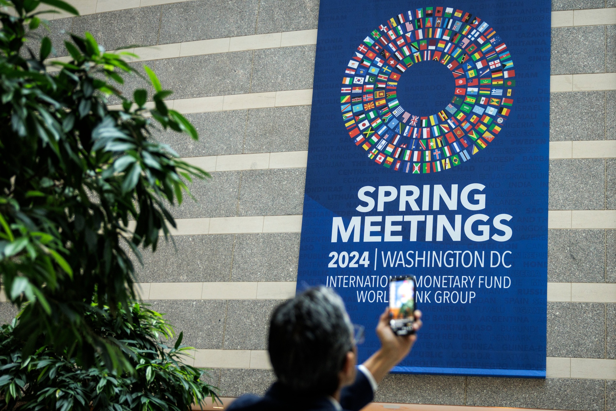 监视在华盛顿举行国际货币基金组织和世界银行春季会议标志。