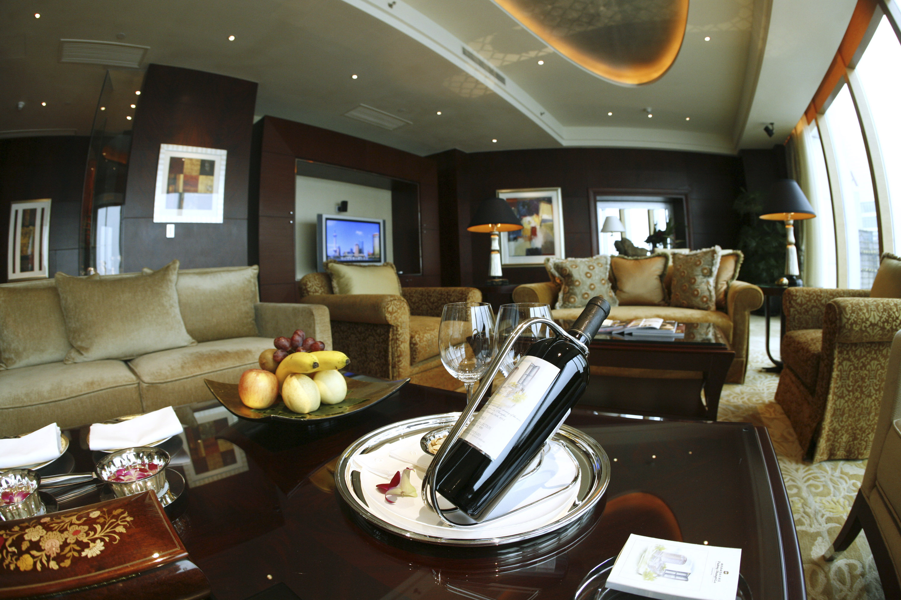 **氛围:**内部融合了欧洲和传统中国元素。我看到了中国红灯笼、洛可可椭圆镀金镜子和中国书法艺术。