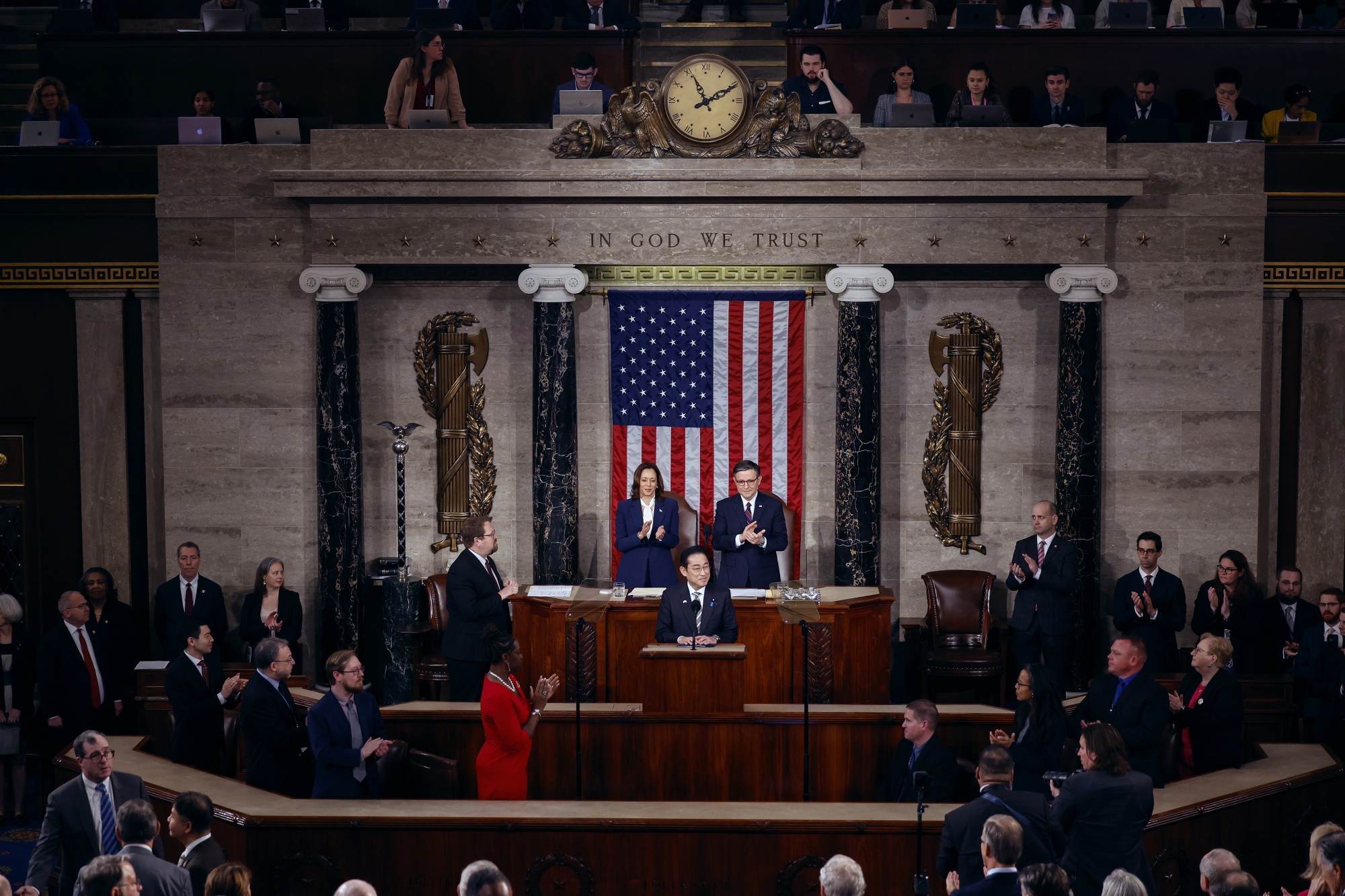 “我在日本国会从来没有得到过这么热烈的掌声,”上周,首相笑着说,他在历史性演讲中收到的掌声回荡在他耳边。岸田在华盛顿交到了朋友,他以令人惊讶的亲和演讲给人留下了良好印象,其中充满了关于他在美国童年时期观看《石器时代》的笑话。