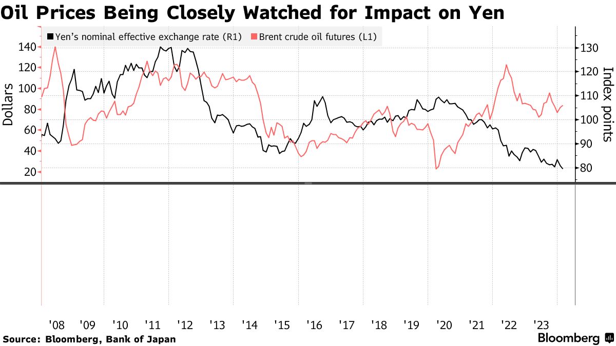 好像日元没有足够的理由贬值,出现了高油价可能打击能源进口依赖的日本及其货币的风险。