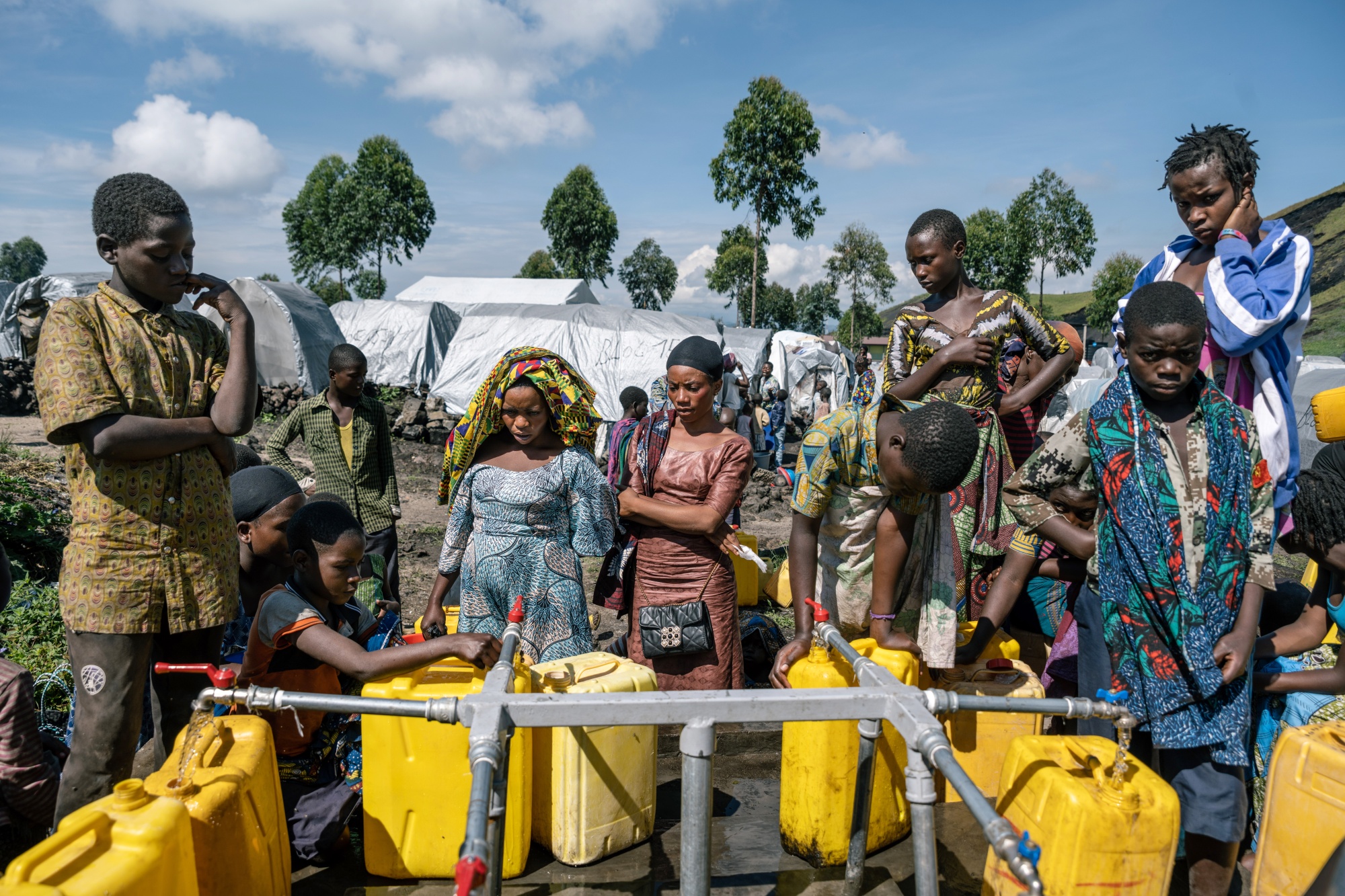 许多来自马西西领地的流离失所的人们在北基伍省的沙宾杜营地避难,这是M23叛军和刚果军队之间冲突后的结果。摄影师:Arlette Bashizi/Bloomberg