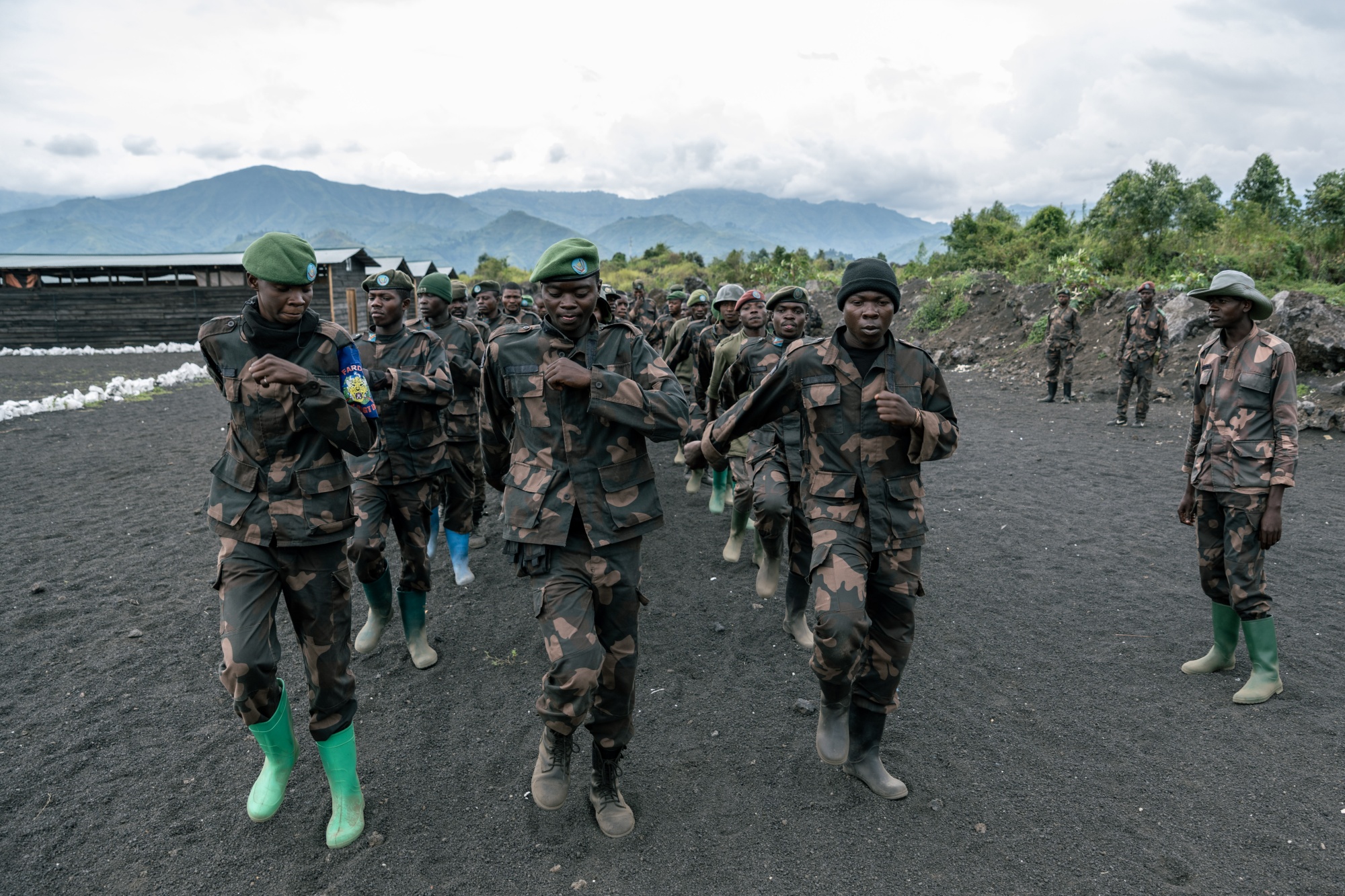 刚果民主共和国武装部队(FARDC)在东部刚果民主共和国北基伍省的Mubambiro营地接受训练,日期为4月11日。