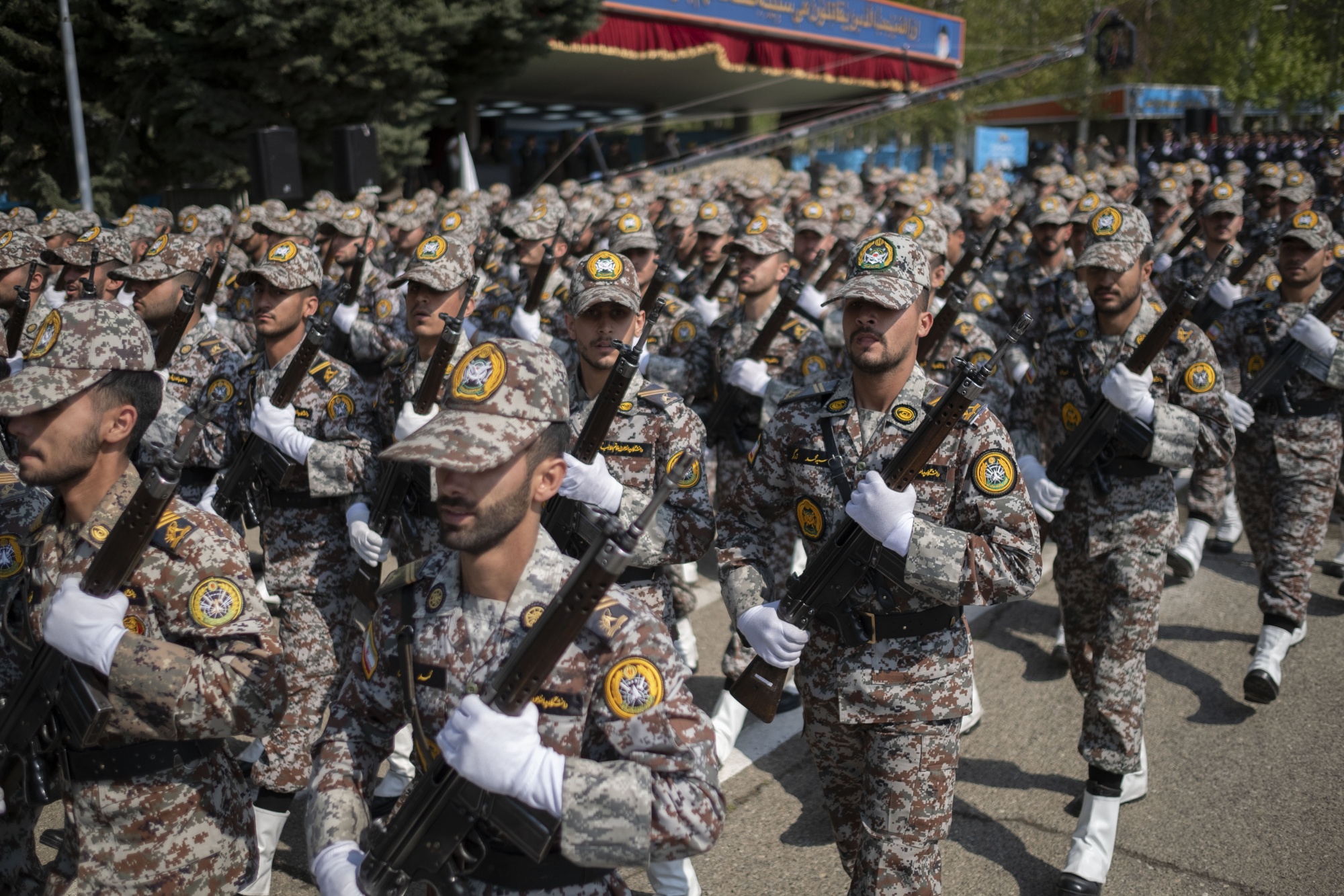伊朗士兵在德黑兰举行的阅兵式上行进。