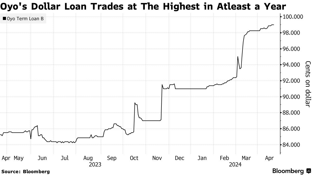 Oravel Stays Ltd.,即Oyo的母公司,正在与银行家讨论筹集3.5亿至4.5亿美元,以偿还其到期日为2026年的B类贷款,知情人士表示,要求不透露姓名,因为这些信息是私人的。