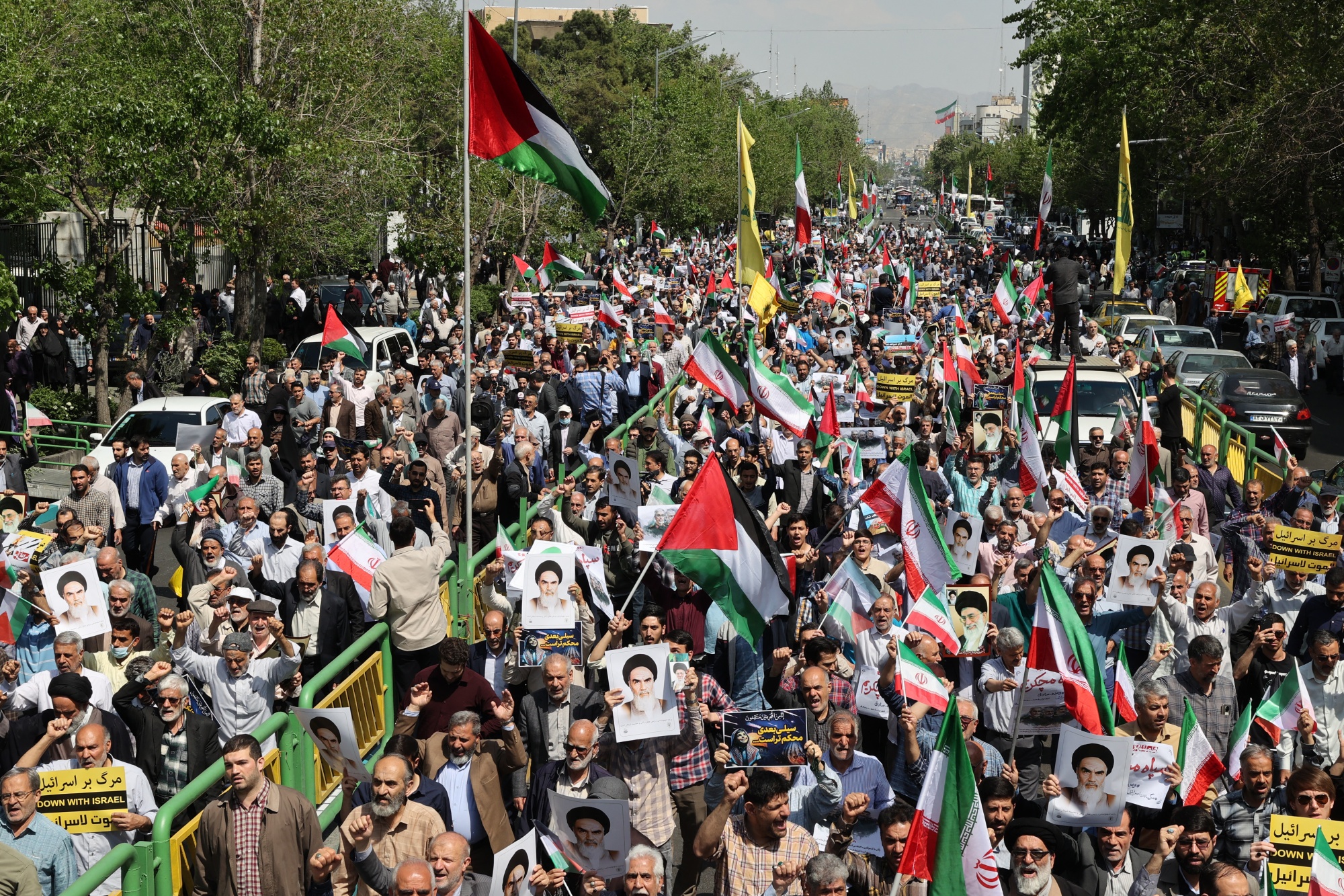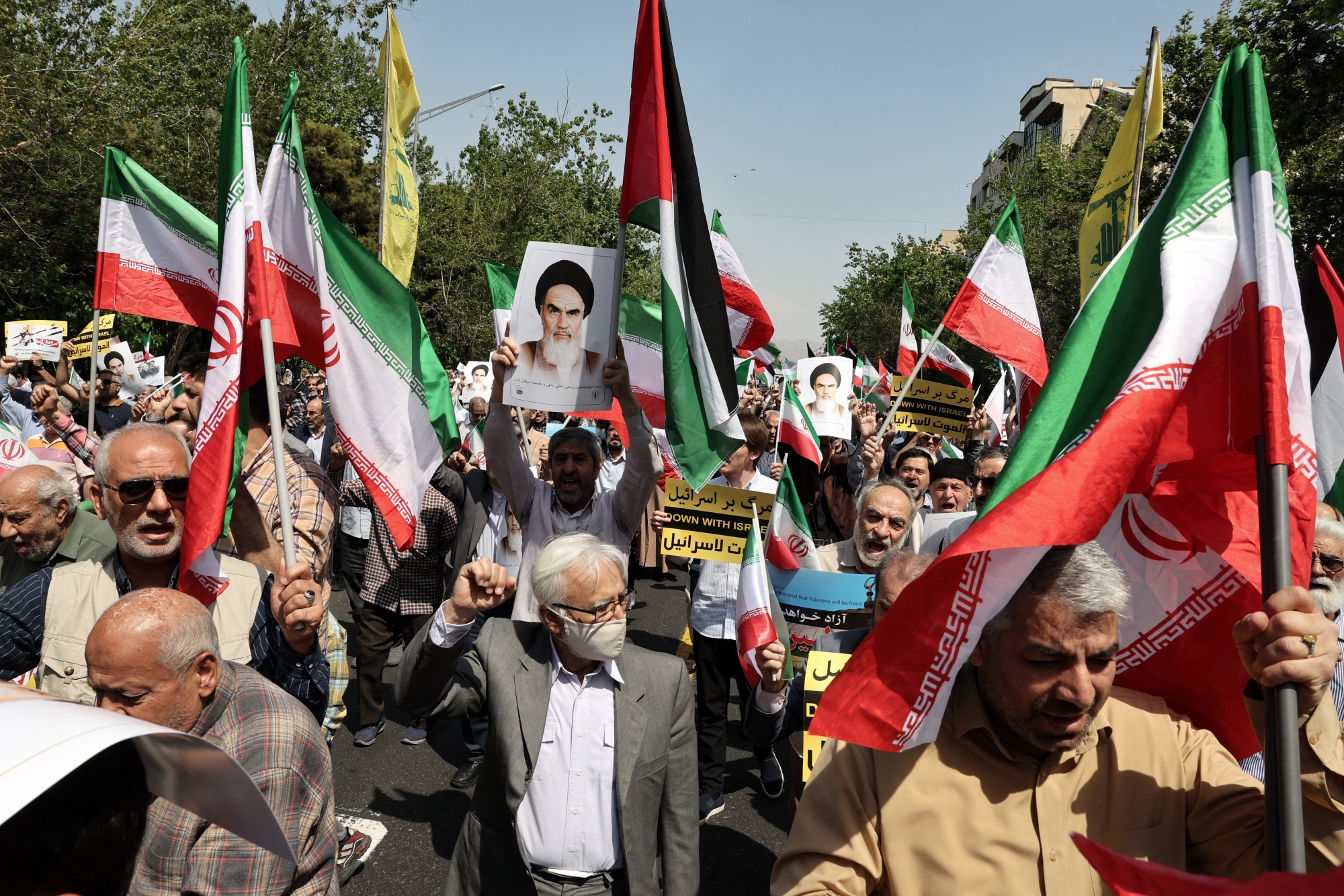 德黑兰,伊朗4月19日的示威活动。Atta Kenare/AFP/Getty