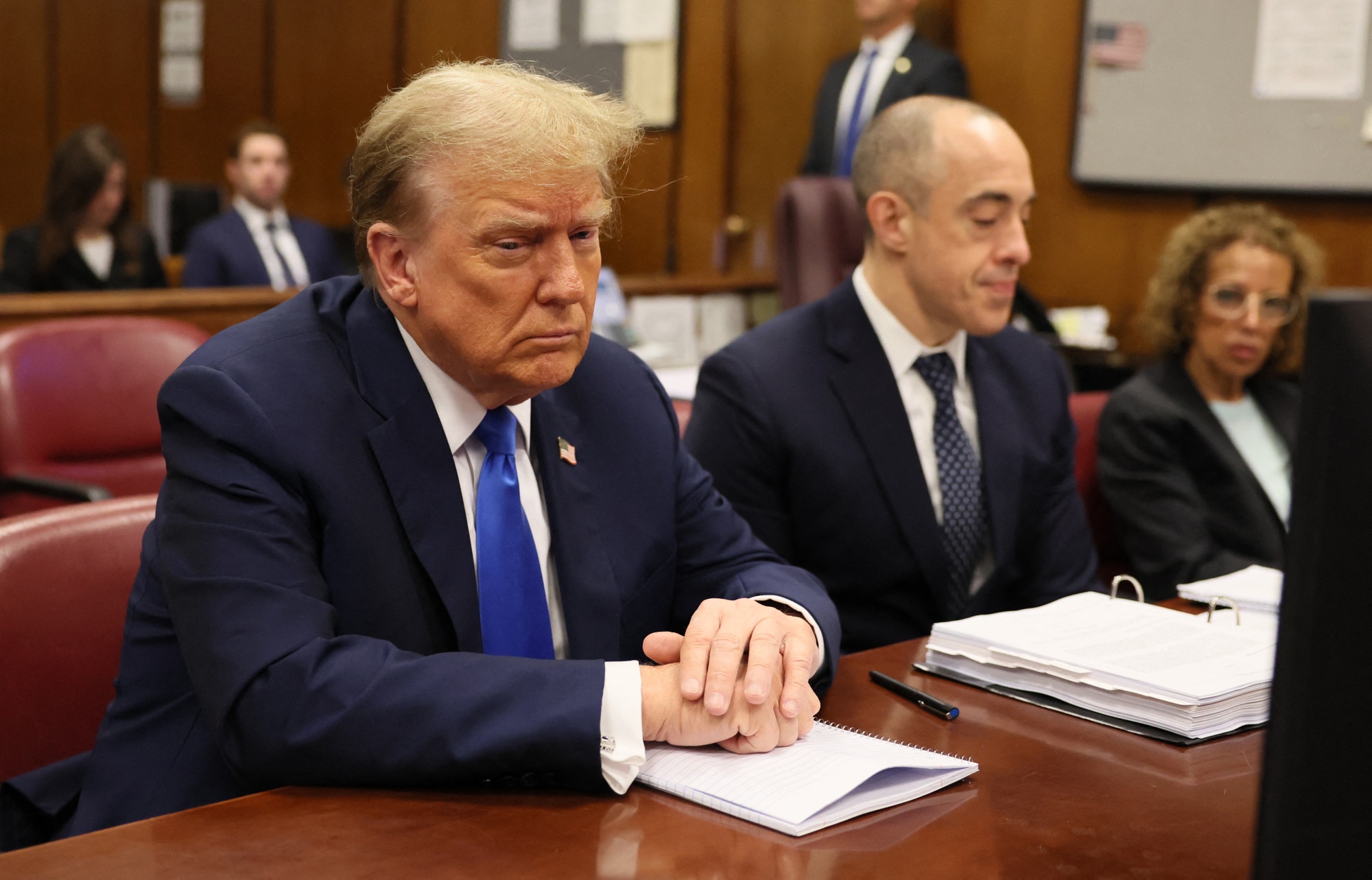 唐纳德·特朗普出席纽约市曼哈顿刑事法院的审判,日期为4月18日。