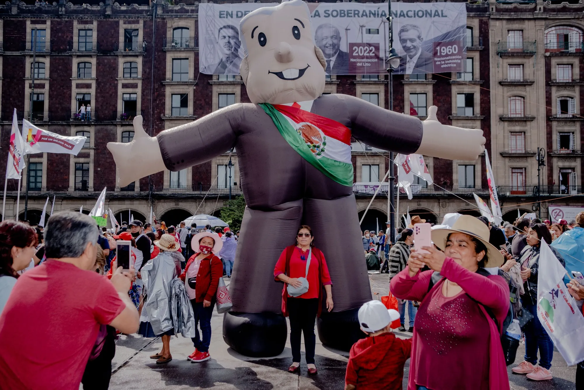 安德烈斯·曼努埃尔·洛佩斯·奥布拉多尔的支持者们在2023年3月18日拍摄与总统的放大图像合影,纪念墨西哥对外国石油资产的征用85周年。摄影师:弗雷德·拉莫斯/Bloomberg尽管投资者希望在谢因鲍姆政府下支持能够持续,但她对如何长期解决Pemex的财务问题却鲜有表态。