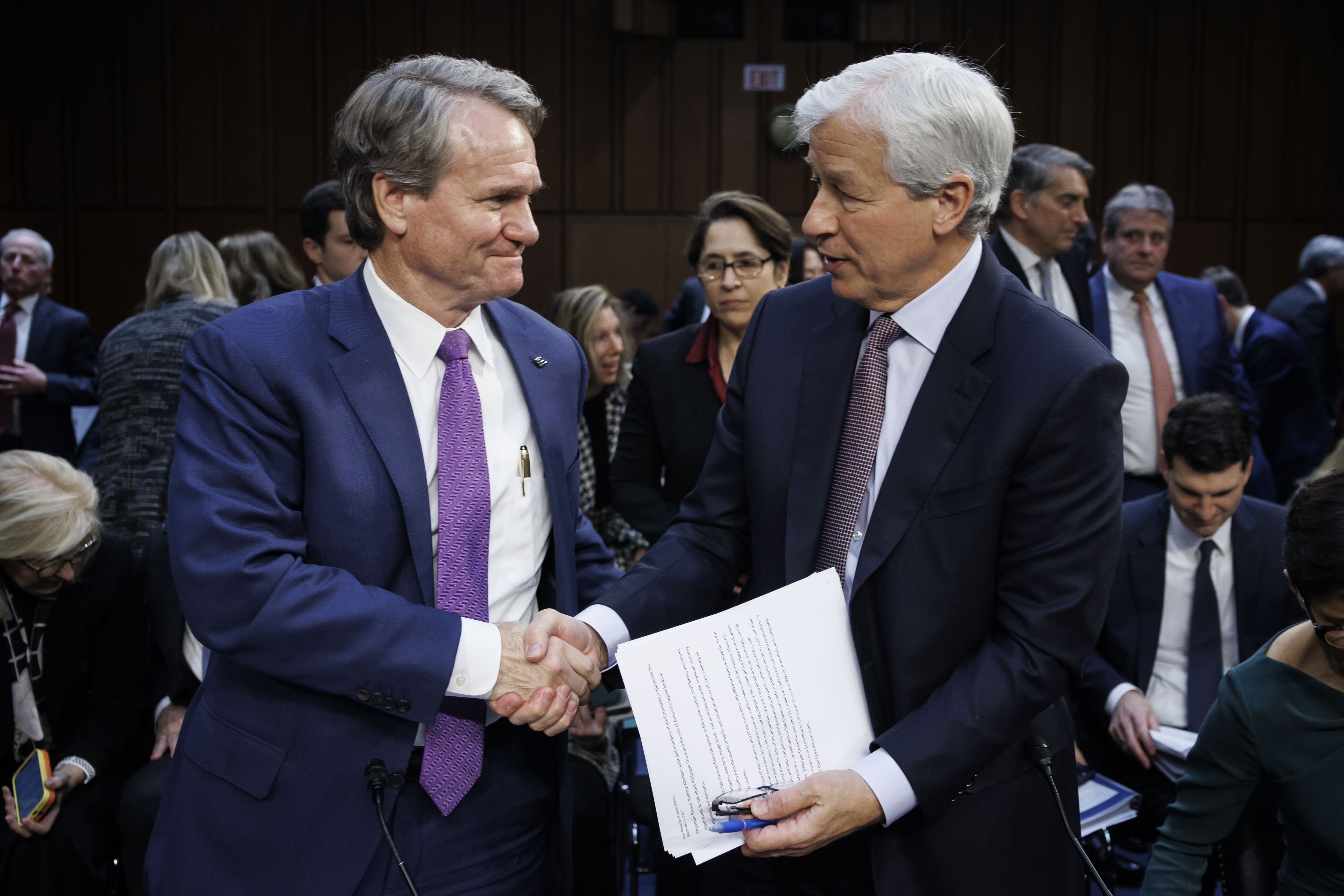 美国银行公司首席执行官布莱恩·莫尼汉和摩根大通公司董事长兼首席执行官杰米·戴蒙