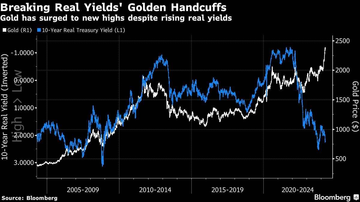 为什么黄金创历史新高,而在其他时候高实际收益率会导致其价格下跌?