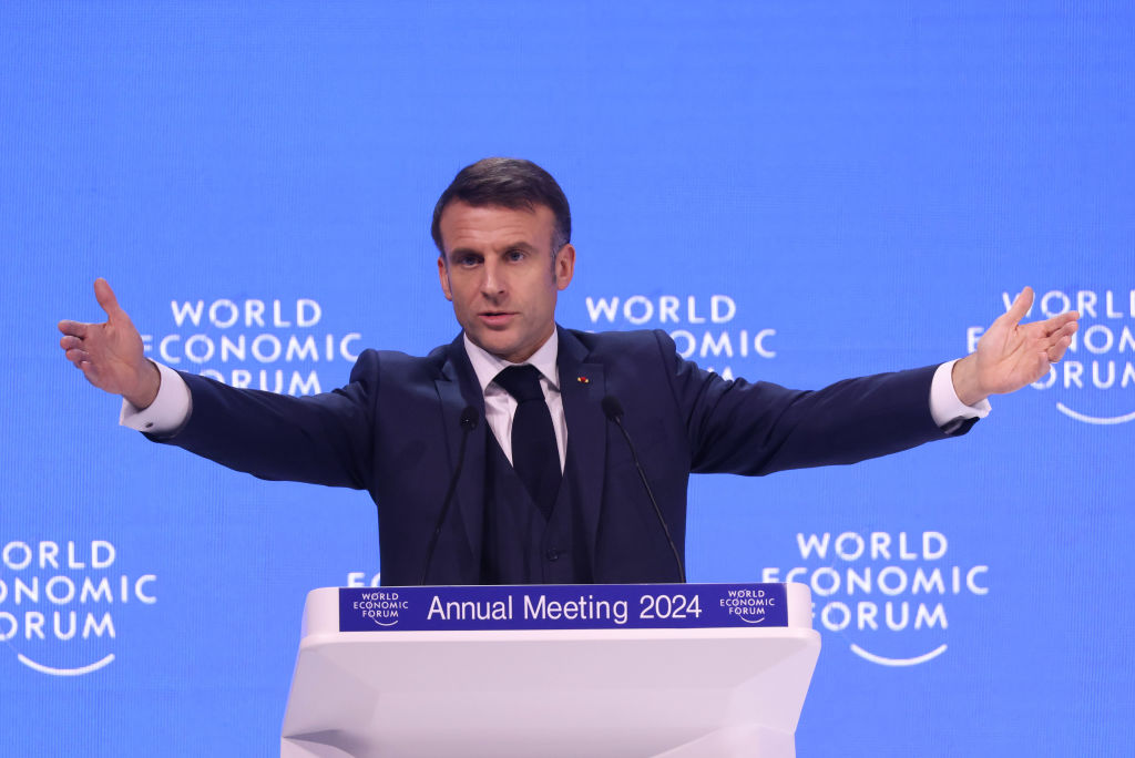 法国总统埃马纽埃尔·马克龙于2024年1月17日星期三在瑞士达沃斯世界经济论坛上。