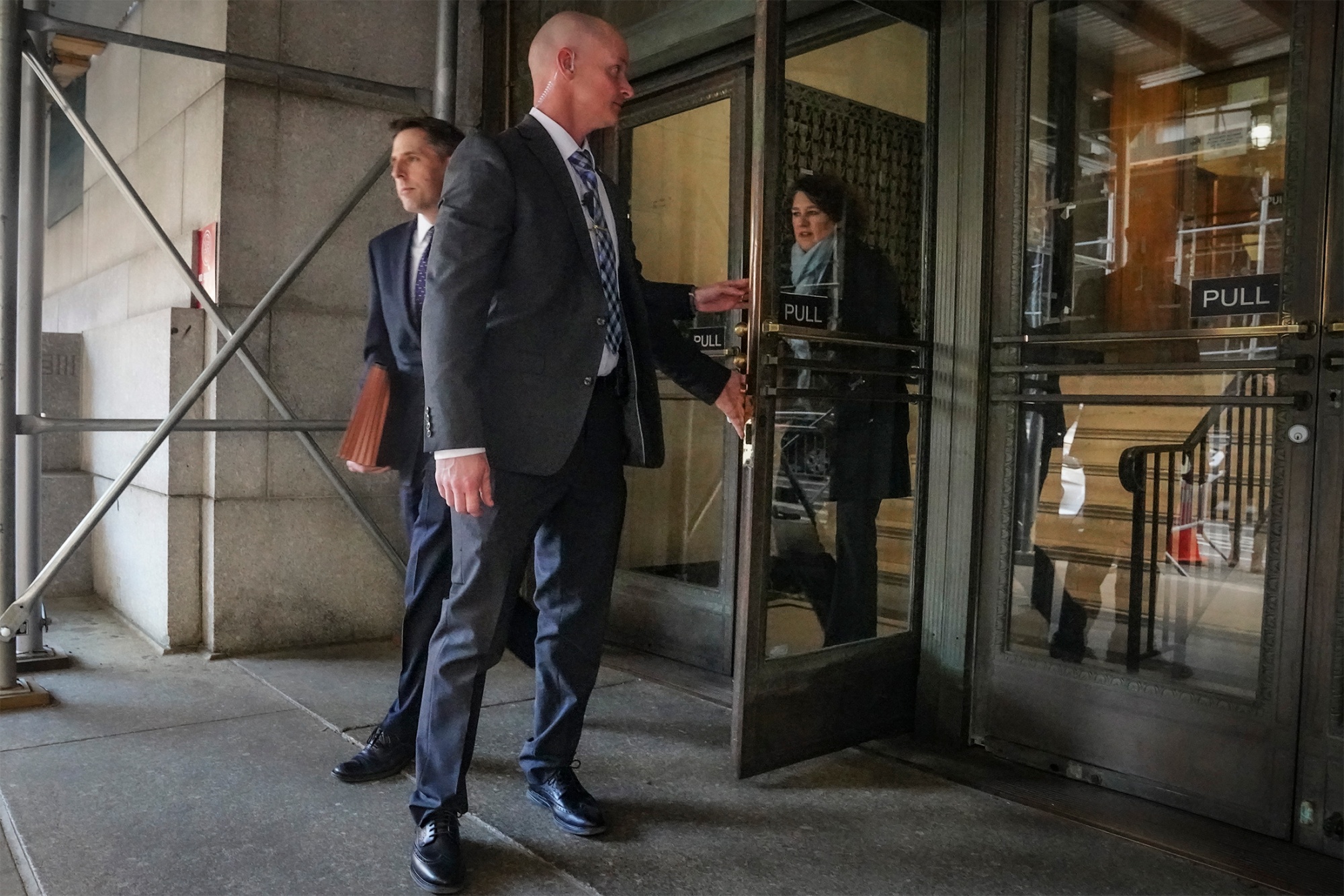 检察官马修·科兰杰罗(Matthew Colangelo),左,和苏珊·霍芬格(Susan Hoffinger),右,于3月30日离开纽约一座州政府大楼。摄影师:贝贝托·马修斯/AP照片马修·科兰杰罗高级顾问