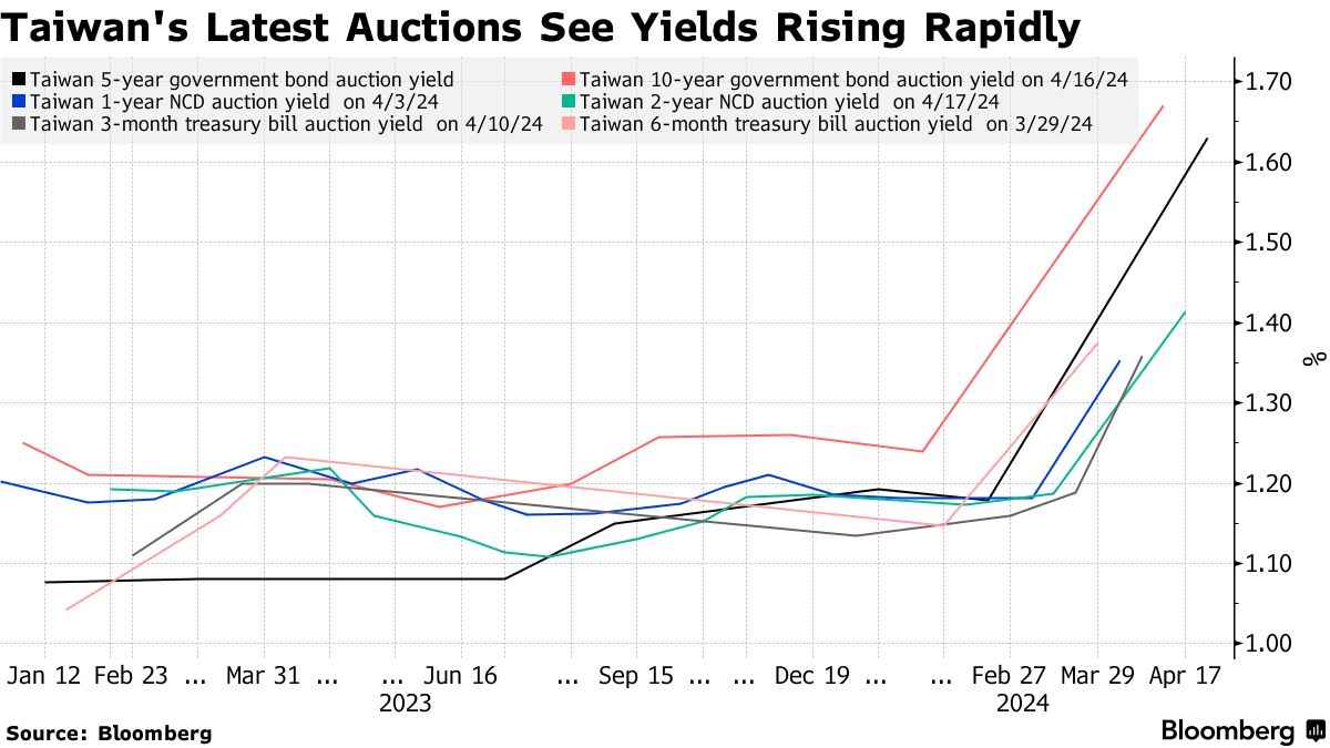 台湾政府债券不受青睐,交易员担心顽固的通胀和坚实的经济前景可能会迫使决策者再次加息。