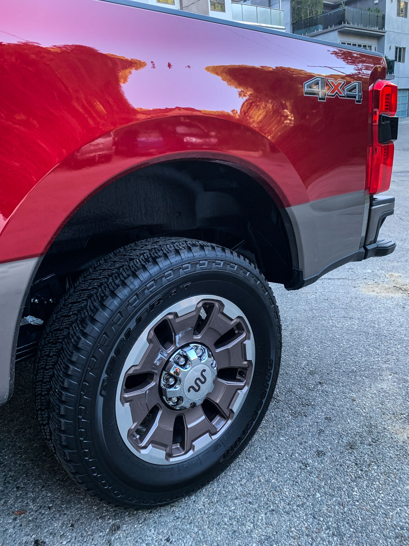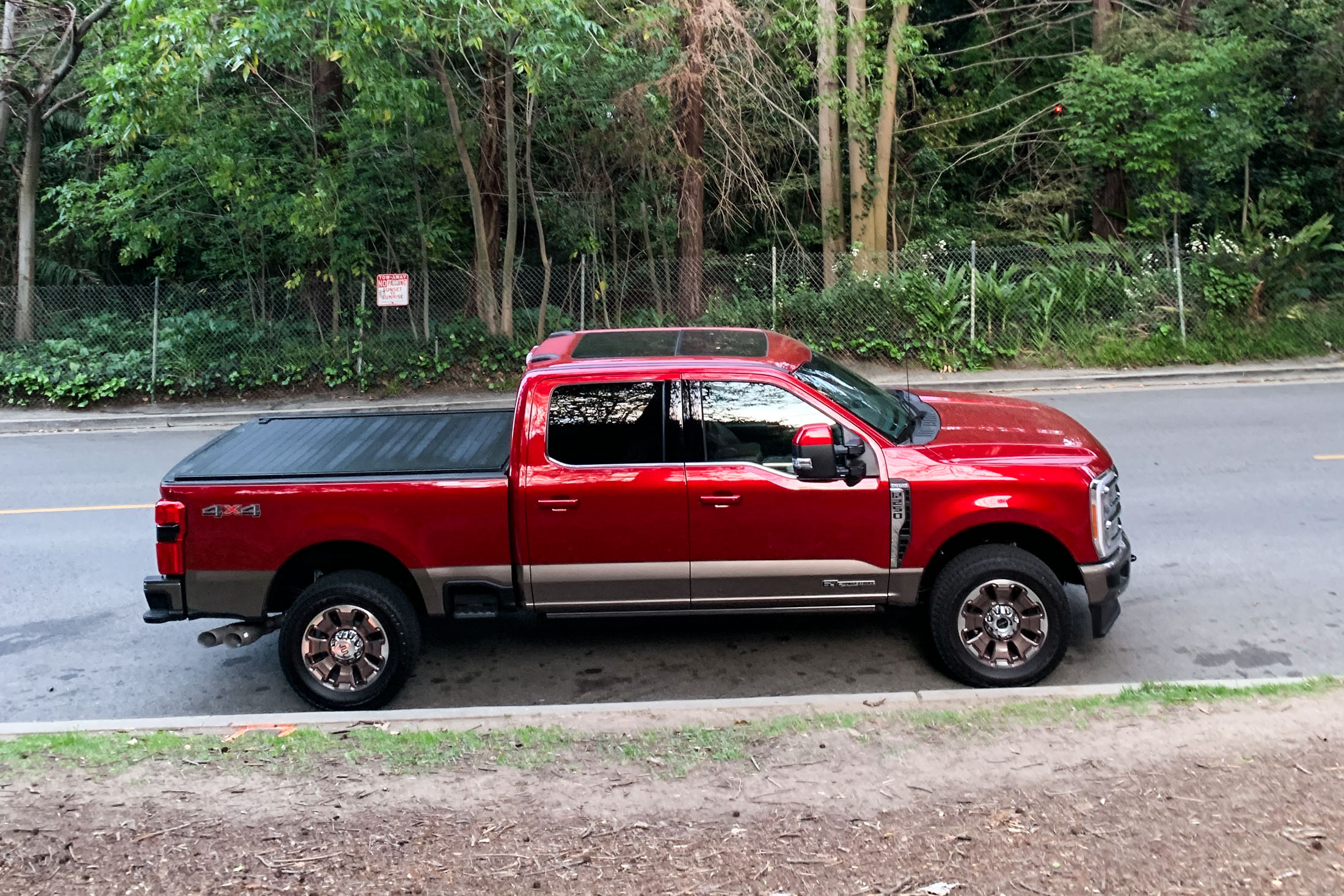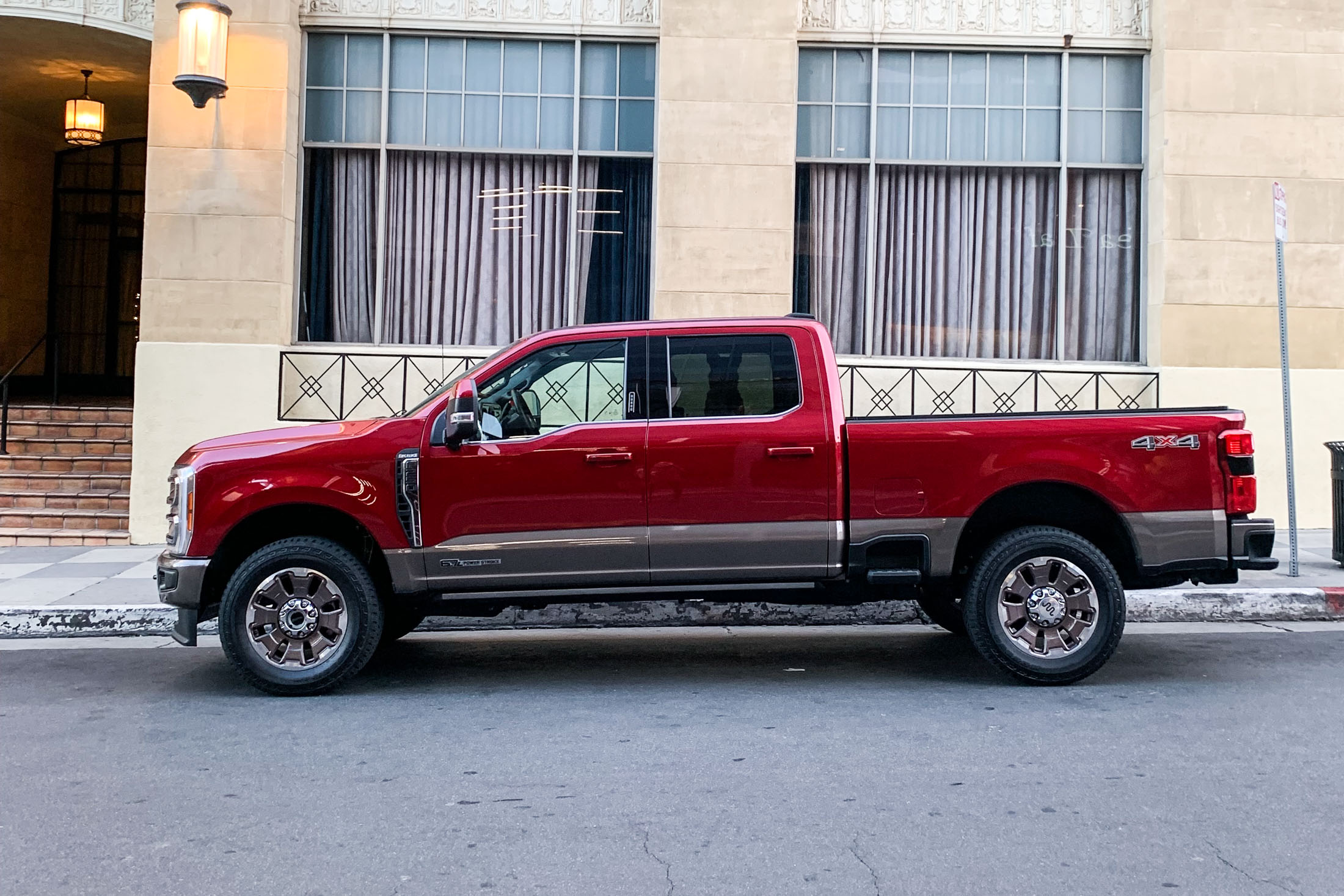 我驾驶的这款变种配备了一台10速自动变速器和福特全新的6.7升V-8柴油发动机,扭矩高达1,200磅英尺,额外再加上500马力。它可以拖曳40,000磅的重量,是任何体面卡车上标准的两倍,足以拖曳船只、房车、ATV、马匹拖车,或者大约七辆Cybertruck。