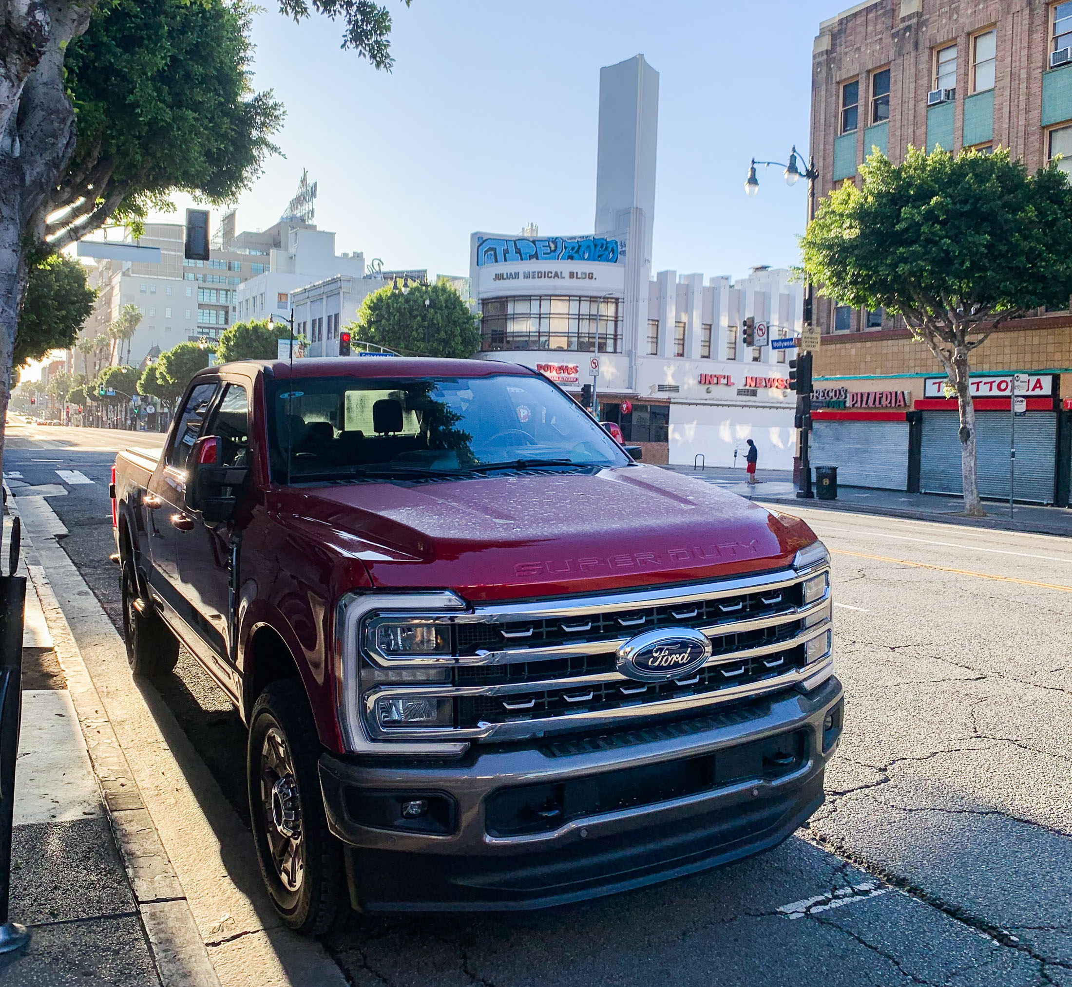 F-250在日落大道上从红绿灯到红绿灯时表现得非常激进,但当我想从55英里/小时加速到70英里/小时时,在高速公路上并不那么嚣张。当我想超车时,感觉有些迟缓。如果你需要在高速行驶时紧凑的转向和即时的操控反应,那这不是适合你的车辆。