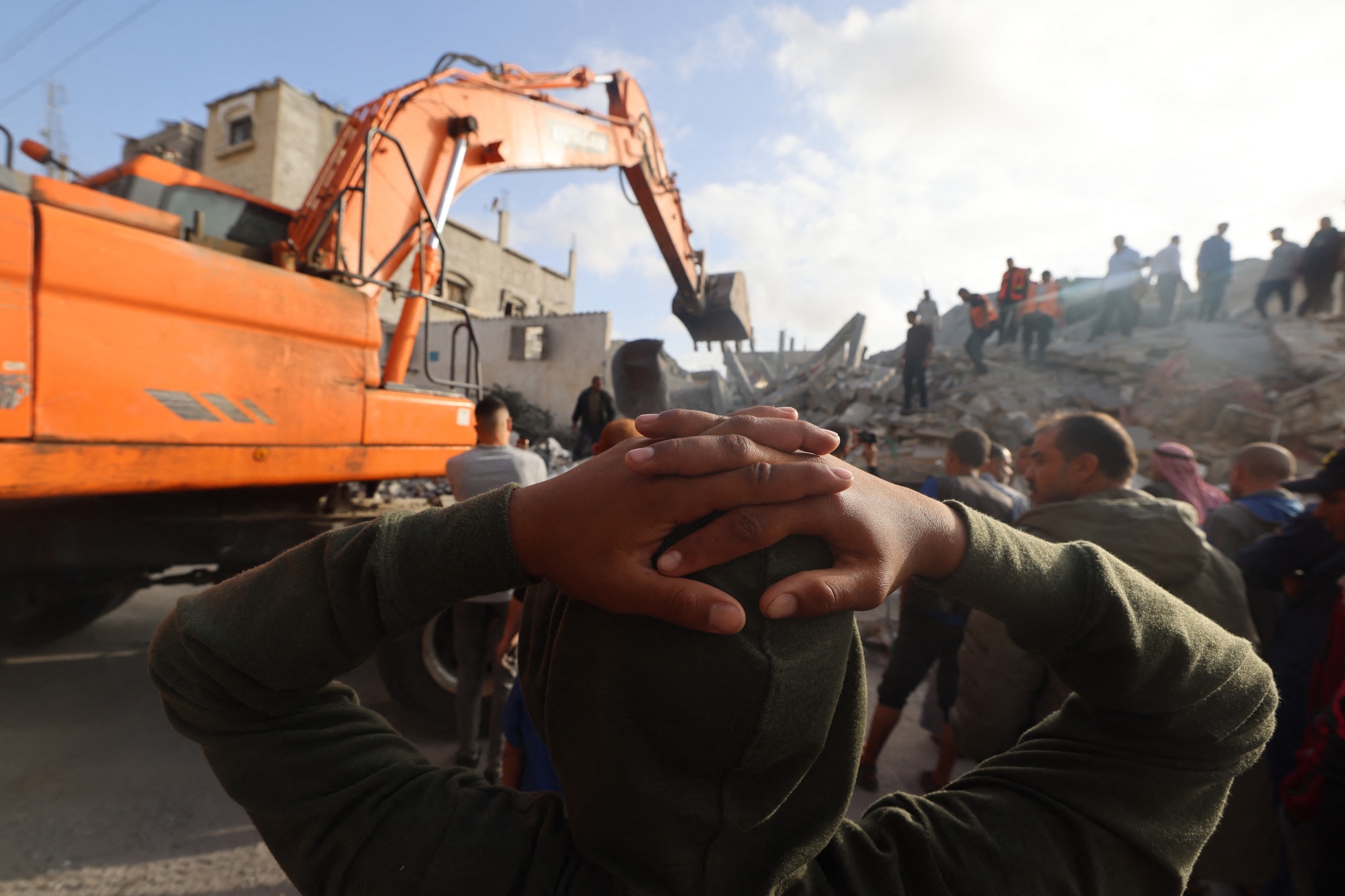 民防队和居民在4月21日拉法发动空袭后进行搜救工作。