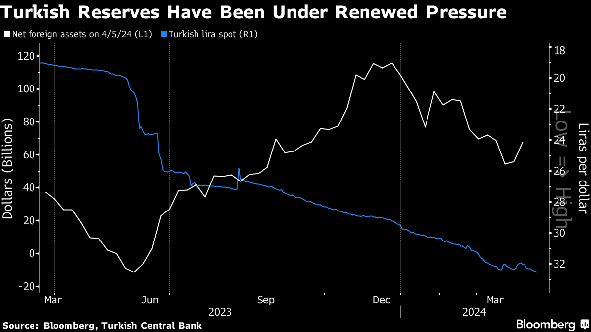 布拉德·史密斯(左)、彭晓(右)与谢赫·塔赫努恩·本·扎耶德·阿勒纳哈扬签署了15亿美元的投资协议。来源:G42**“不惜一切代价”:**卡拉汉州长强调土耳其央行已超出市场对货币紧缩的预期,强调央行将采取更多措施来遏制通货膨胀。面临确保通货紧缩和重建国际储备之间的权衡,央行可能会选择放慢美元购买的步伐,以控制消费品价格,卡拉汉在美国的另一场活动中表示。